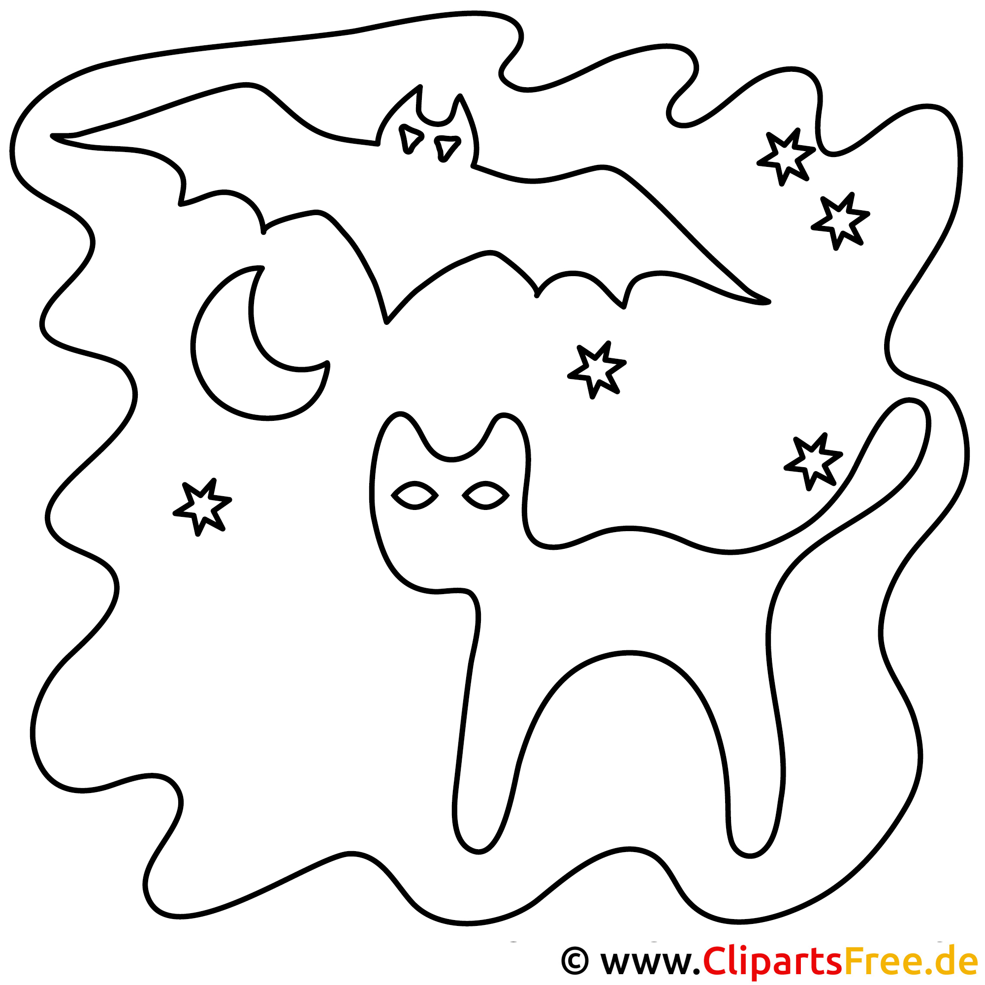 Stell dir vor, du schaust in eine geheimnisvolle, zauberhafte Nacht. Auf diesem Ausmalbild gibt es eine neugierige Katze – mit großen, wachsam weißen Augen – die in der Dunkelheit umherstreift. Über ihr fliegen zwei fliegende Fledermäuse, die mit ihren scharfen Umrissen den Himmel durchqueren. Umrahmt von einem sanften Mond und funkelnenden Sternen, voller Glanz und ein bisschen Geheimnis – perfekt für kleine Künstler, die sich in die fantastischen Welten hineinversetzen können. Diese Malvorlage ist nicht nur kinderfreundlich, sie regt auch die Fantasie an!