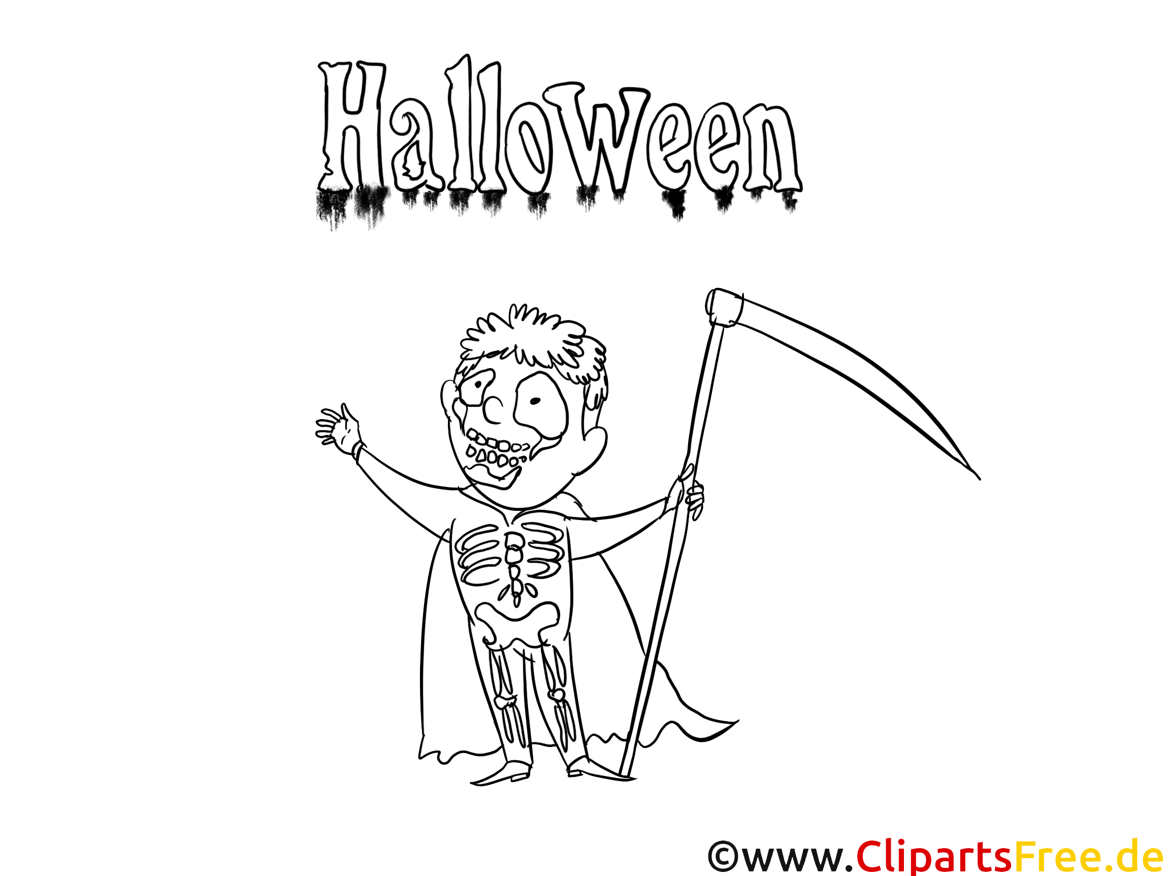 Schaut mal! Dieses Ausmalbild ist einfach perfekt für Halloween! Es zeigt ein fröhliches Skelett, das sich mit einer großen Sichel in der Hand präsentiert. Es trägt einen Umhang und grins — ganz hübsch schaurig, aber dazu noch lustig. Die Schrift „Halloween“ schwebt über dem Bild und die Buchstaben wirken, als ob sie verloren in der Nacht stehen würden. Die Kombination aus Schaurigkeit und Humor geschnürt in Spaß ist einfach klasse! Auf einen Blick erkennt man, dass Halloween nah ist. Und hey, man kann die Zeichnung nach Belieben ausmalen, zum Beispiel in leuchtenden Farben oder ganz spooky schwarz!