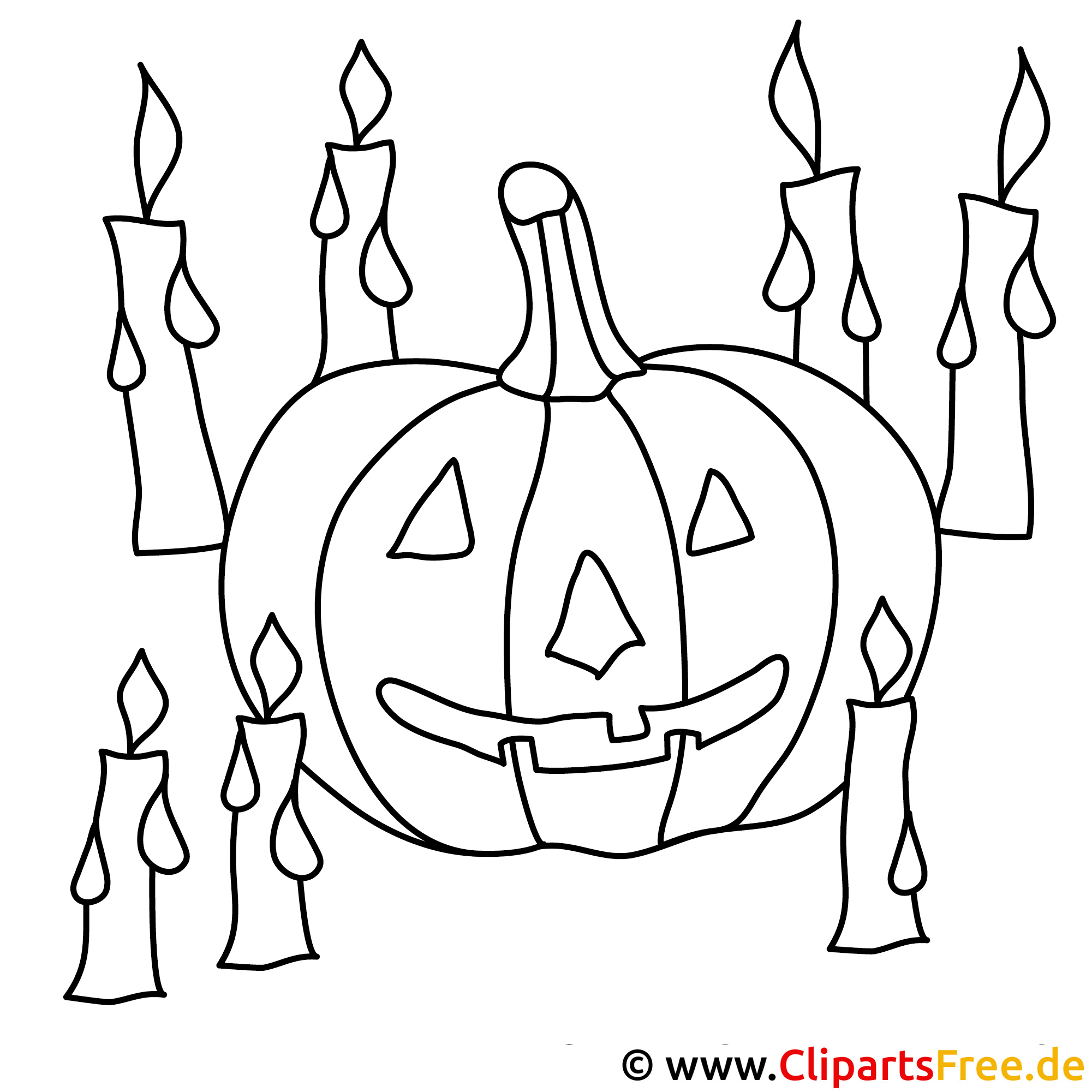 Halloween Malvorlage kostenlos mit Kerzen und Kuerbis
