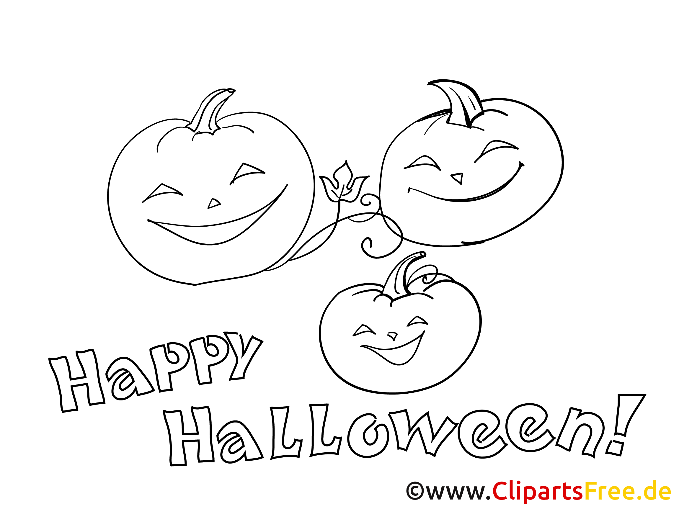 Hier haben wir ein super witziges Ausmalbild von fröhlichen Kürbissen! Die drei fröhlichen Gesellen lächeln einem direkt entgegen. Ihre runden Formen und grünen Stängel machen sie einfach lustig anzusehen. Und das Beste? Sie strahlen nur so vor guter Laune, besonders wenn man sich die süßen Gesichter anschaut! Rechts am Bildrand steht in geschwungenen Buchstaben „Happy Halloween!“, was das Ganze noch festlicher macht. Ein perfektes Motiv für die gruselige Jahreszeit.