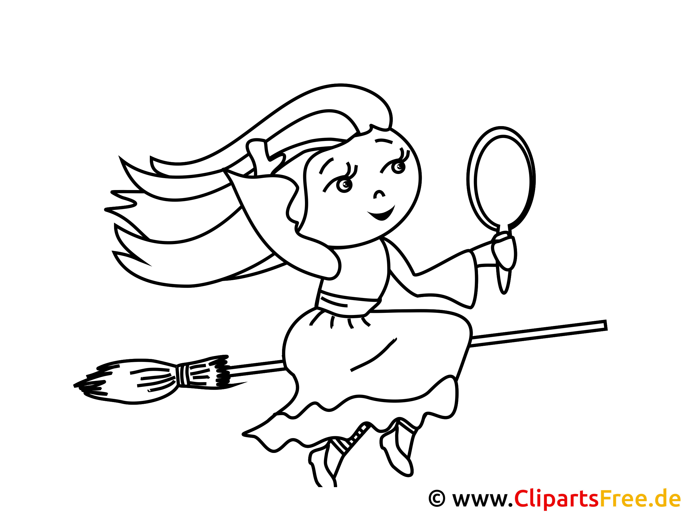 Hier hast du ein wunderschönes Ausmalbild einer fröhlichen kleinen Hexe. Sie fliegt mit ihrem Besen durch die Luft, die Haare wehen im Wind, und in der Hand hält sie einen spiegelnden Zauberpiegel. Man könnte fast denken, sie hat etwas ganz Wichtiges entdeckt! Das Outfit der Hexe ist ganz klassisch und gleichzeitig ein bisschen verspielt, was sie gleich ins Herz schließt. Die Falten in ihrem Kleid und die lebhafte Pose zaubern ein Lächeln ins Gesicht. Was für ein tolles Motiv!