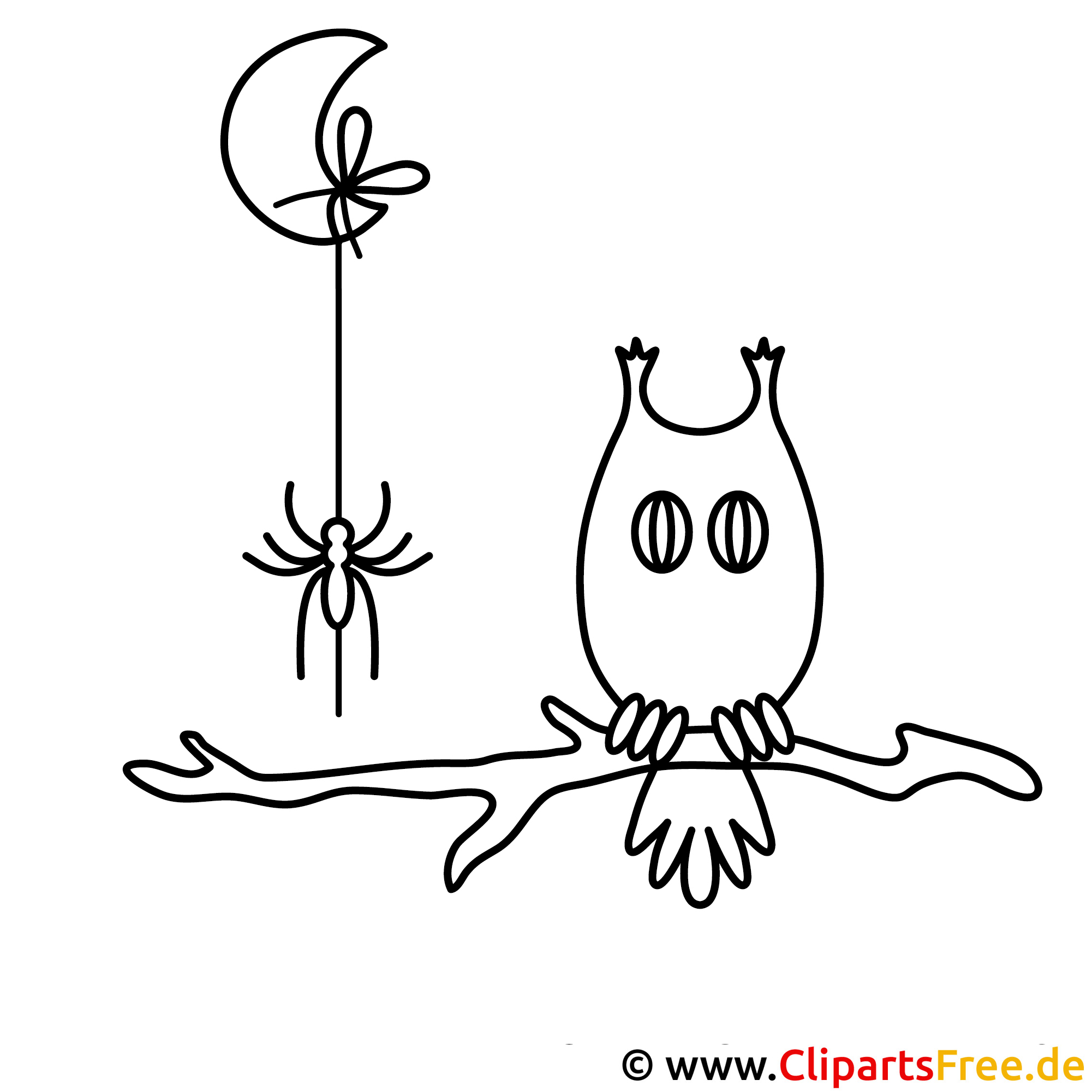 Die Ausmalvorlage zeigt eine niedliche Eule, die gemütlich auf einem Ast sitzt. Über ihr hängt eine kleine Spinne, die gerade ihre Netze webt. Außerdem sieht man einen halbmondhaften Mond, der die Szene ein wenig zauberhaft macht. Die Eule hat große, runde Augen und wirkt sehr neugierig. naja, Am Ast blitzen kleine Details, die dem Bild eine gewisse Lebendigkeit verleihen. Dabei ist die gesamte Komposition einfach gehalten, aber genau das macht sie so charmant. Echt toll, oder?