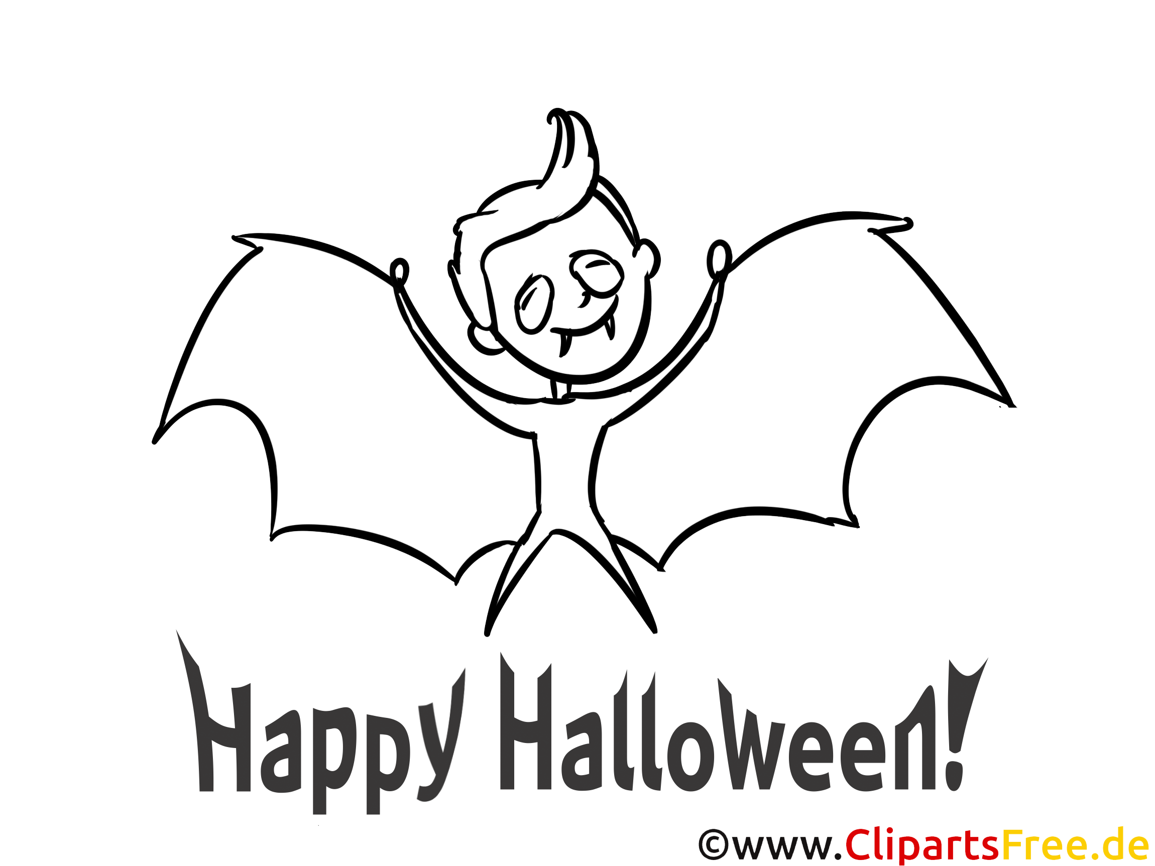 Das Motiv zeigt einen fröhlichen kleinen Gesellen, der sich in einen originellen Vampir verwandelt hat. Mit großen, schwingenartigen Fledermausflügeln und einem verspielten Gesichtsausdruck scheint er die Dunkelheit der Nacht voller Abenteuer zu genießen. Der Schriftzug „Happy Halloween!“ strahlt in großen, fetten Buchstaben unterhalb des Charakters und lädt ein, mit Farbe und Kreativität aufmerksam umzugehen. Die Kombination aus Spaß und ein wenig Grusel macht das Bild ideal für die Halloween-Zeit!