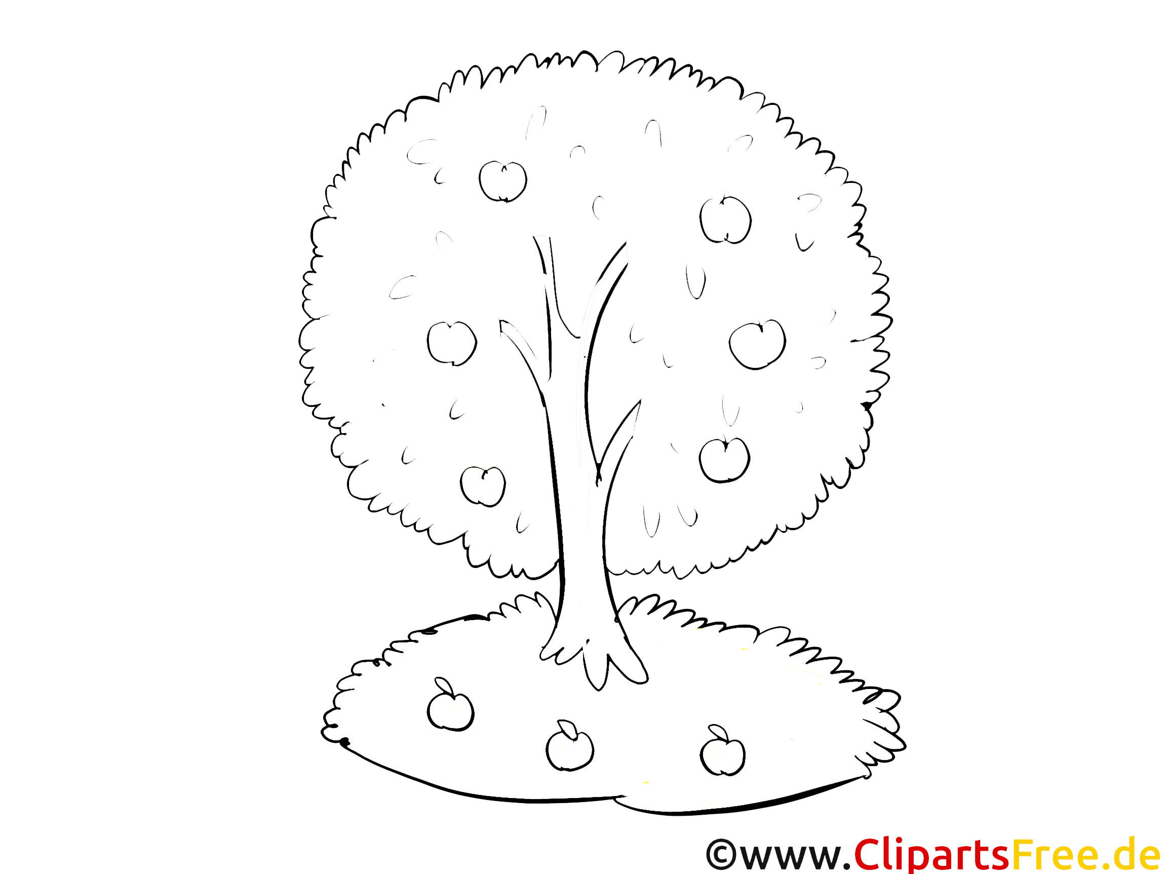 Apfelbaum im Garten - Kostenlose Ausmalbilder Herbst
