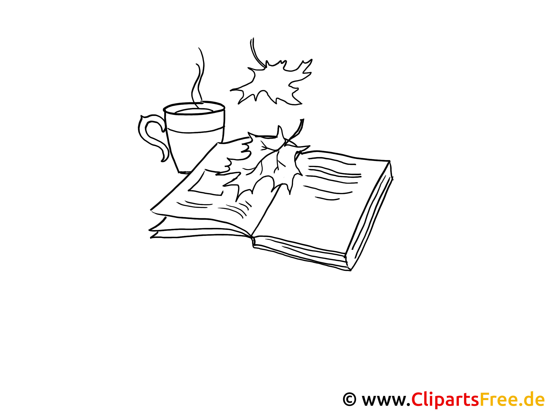 Das Motiv, das hier auf dem Ausmalbild zu sehen ist, ist wirklich einladend und gemütlich. Wir haben ein geöffnetes Buch, das etwas verschlungen wirkt. Ein paar kahle Zweige und leuchtend goldene Blätter liegen darauf. Und, oh ja, da ist auch eine dampfende Tasse – vermutlich ein heißer Tee oder vielleicht Kakao? Irgendwie verbreitet das Bild eine warme, beruhigende Atmosphäre, als wolle es uns sagen: „Mach es dir gemütlich und entdecke eine neue Geschichte!“