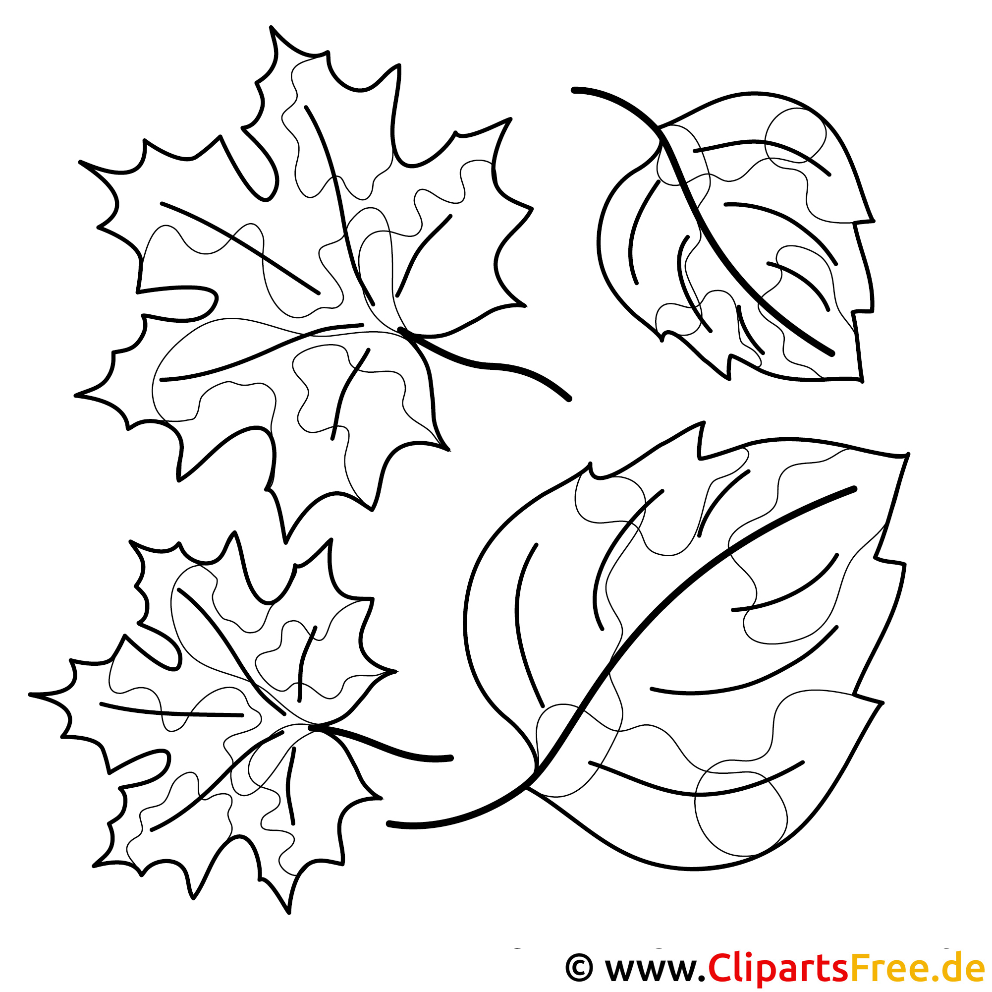 Herbst Ausmalbilder gratis - Ahornblatt, Birkenblatt