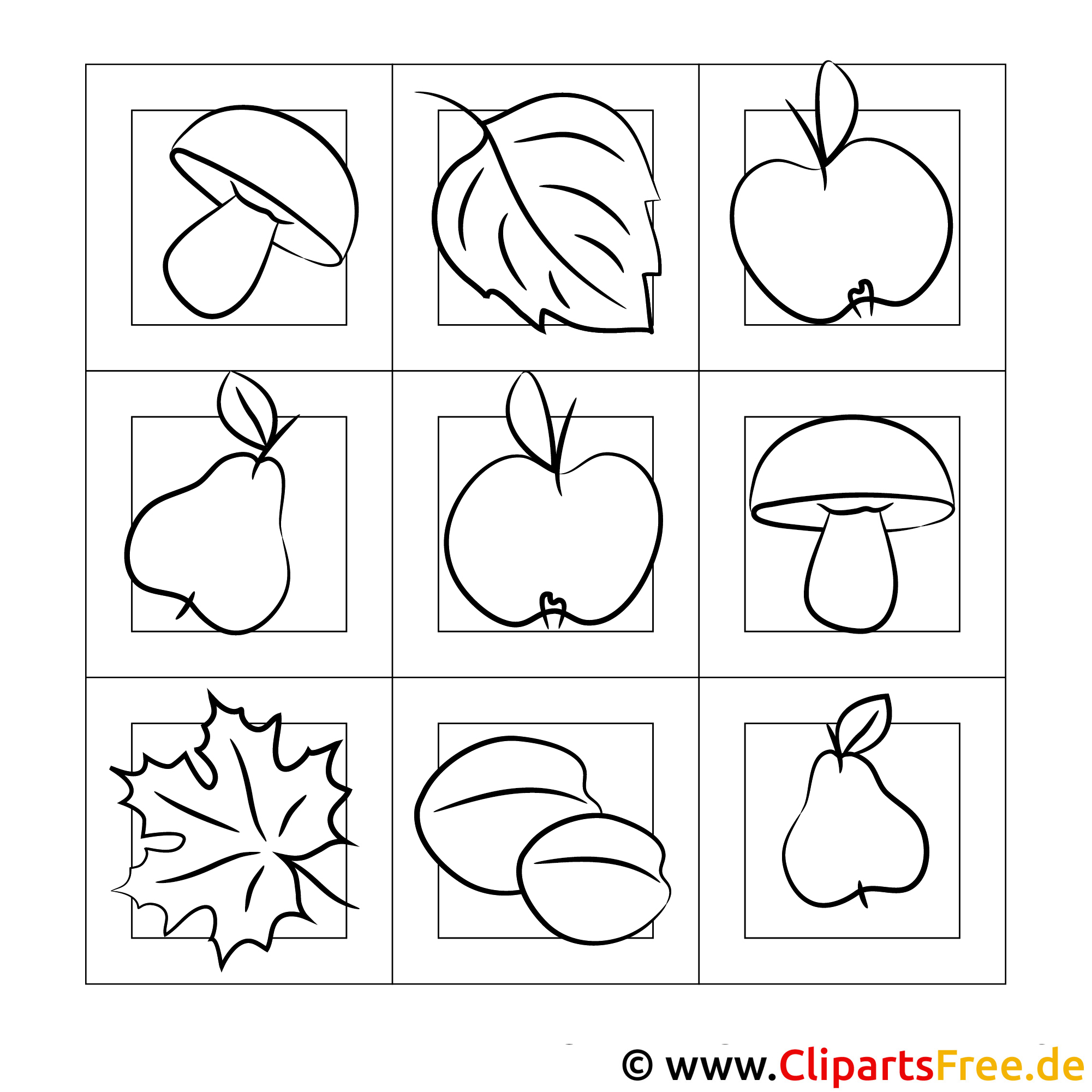 In diesem tollen Ausmalbild findest du eine wunderbare Zusammenstellung von verschiedenen Naturmotiven. Ob das nun die kleine, runde Pilzhüte sind, die sich förmlich danach sehnen, bunt angesprüht zu werden, oder die sanften Blätter, die im Wind leicht schaukeln. Jeder Abschnitt bietet etwas anderes – eine birnenförmige Frucht, knackige Äpfel und sogar ein paar lustige Kastanien. Die gesamte Komposition ist in einem festen Raster angeordnet, was nicht nur Ordnung schafft, sondern auch die Kreativität anregen kann. ähm, Einfach mal die Farben im Kopf durchspielen und die eigene Vorstellungskraft nutzen!