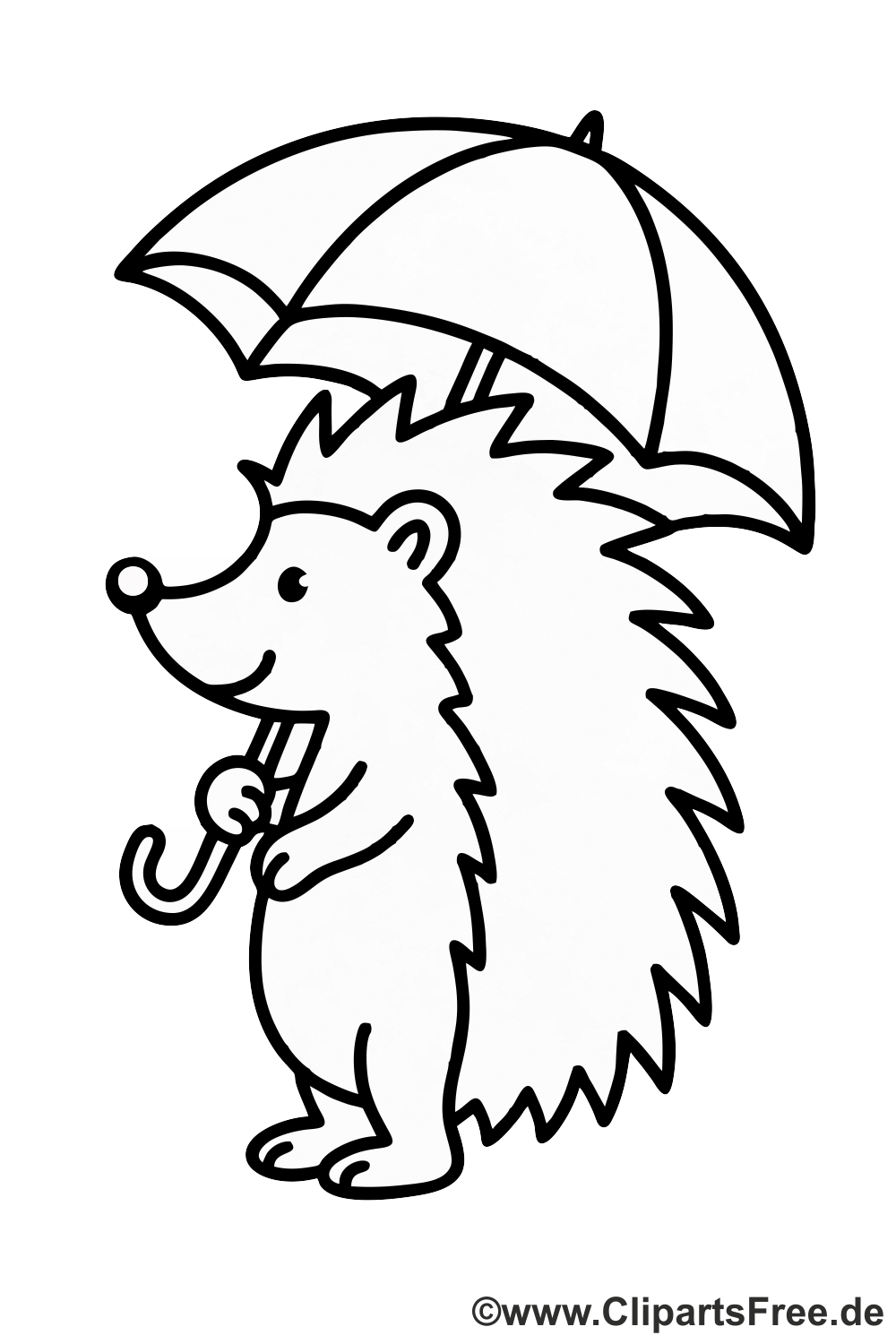Igel mit Regenschirm Malvorlage herunterladen als PDF