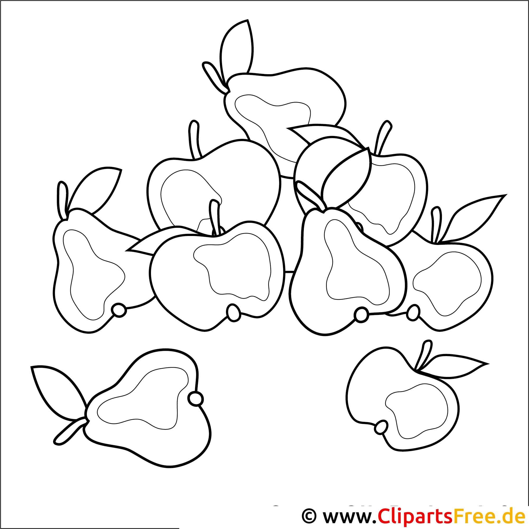Kostenloses Ausmalbild zum Ausmalen Birnen und Aepfel im Herbst