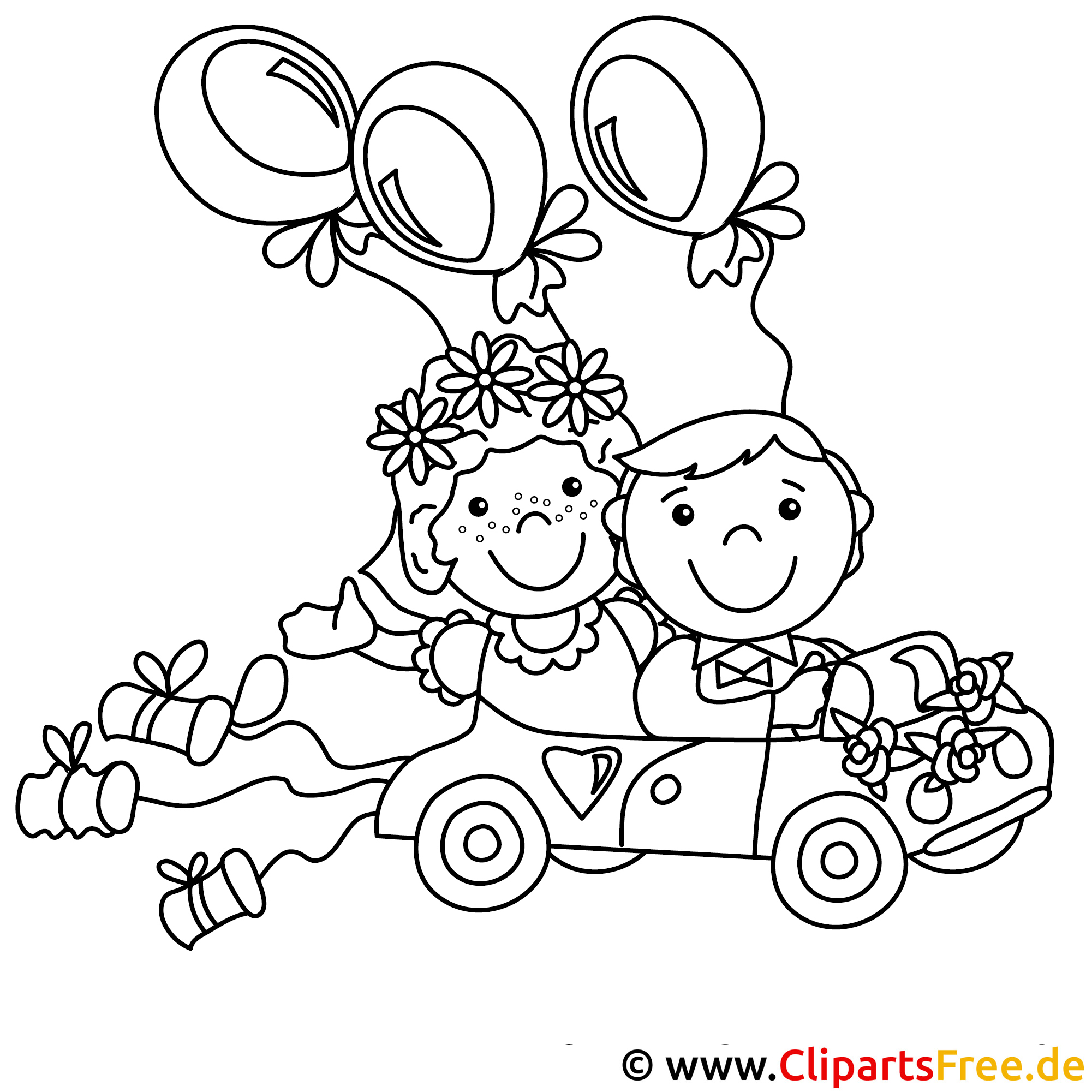 Dieses süße Ausmalbild zeigt zwei fröhliche Kinder, die in einem kleinen, gemütlichen Auto sitzen. Die Beiden sind ganz aufgeregt, denn sie haben bunte Luftballons in der Hand! An ihrem Auto sind Blumen und bunte Bänder befestigt, was das Bild super festlich macht. Eindeutig geht es hier um einen besonderen Anlass, vielleicht um eine Hochzeit oder eine Geburtstagsfeier. Die Kinder strahlen Freude aus und scheinen unbeschwert durch die Gegend zu fahren – einfach entzückend!