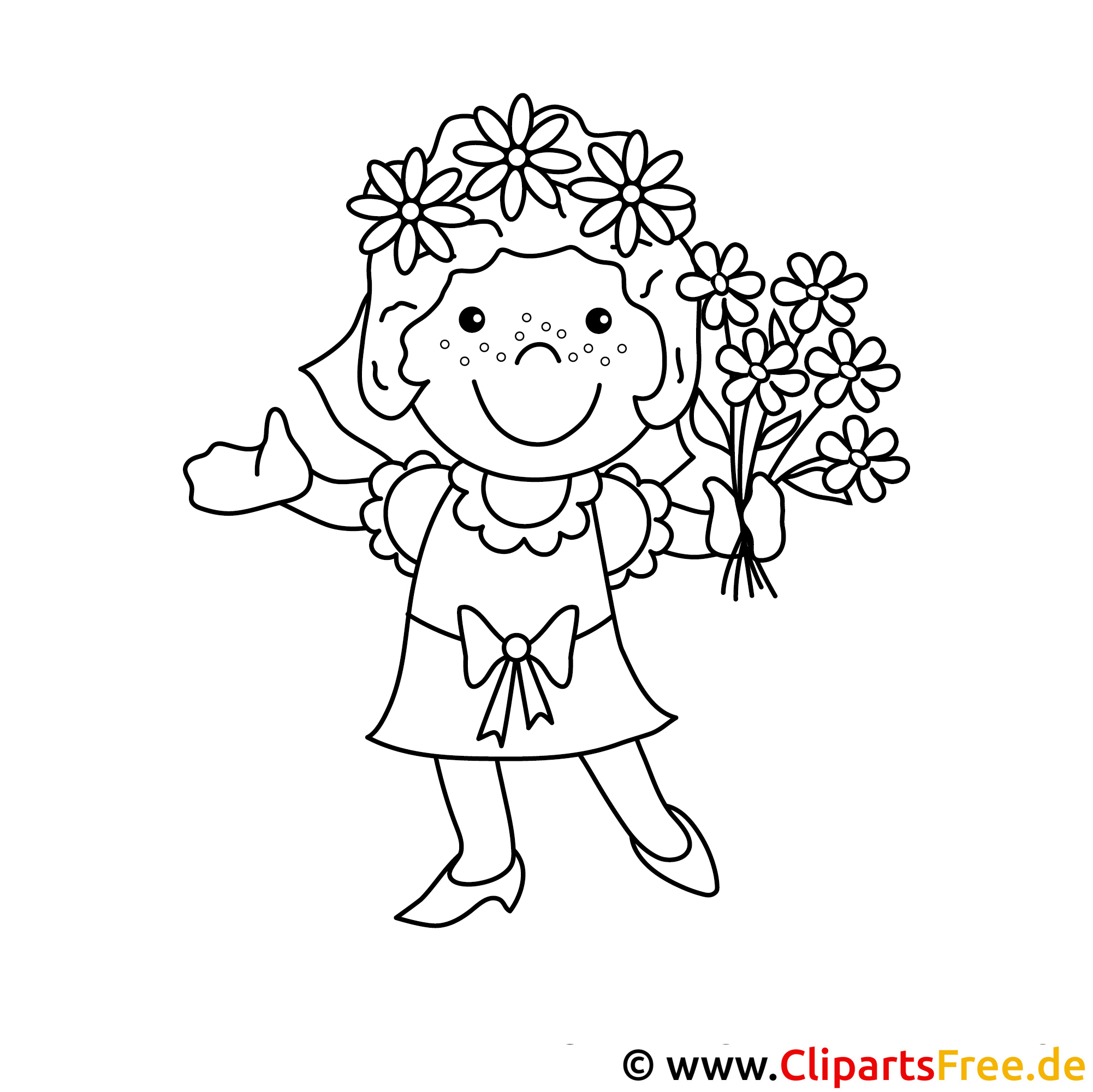 Hier sehen wir ein fröhliches Mädchen, das mit einem strahlenden Lächeln blüht! Es trägt ein hübsches Kleid, das mit einer cute Schleife verziert ist. Auf ihrem Kopf blühen Blumen – wie passend! Oh, und in der Hand hält sie einen bunten Strauß. Diese fröhliche, blumige Atmosphäre macht sofort gute Laune und zaubert ein Lächeln ins Gesicht. Was für eine tolle Ausmalvorlage, um mit lebhaften Farben Leben einzuhauchen! Egal, ob du bunte Pastellfarben oder kräftige Töne wählst, das Bild wird sicher strahlen.