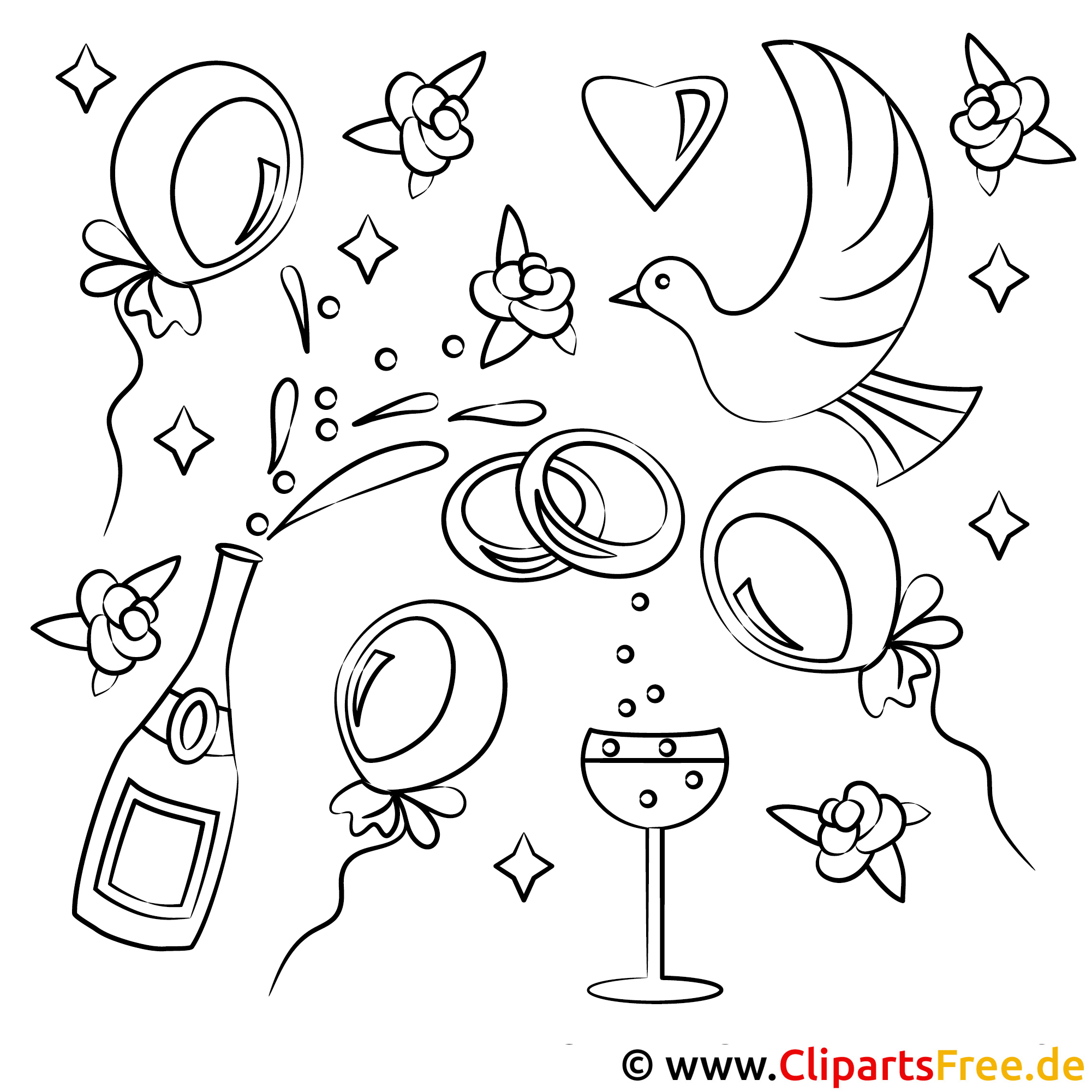 Oh, schau mal! Da ist eine wunderbare Szene, die so viele fröhliche Details enthält. In der Mitte steht eine Flasche, aus der der Schaum spritzt – wie aufregend! Um sie herum fliegen ein paar bunte Ballons und kleine, zarte Blumen, ganz süß. Achte mal auf die Ringe, die sich neben einem Glas befinden. Das Bild vermittelt dieses Gefühl von Feierlichkeit und Freude. Eine weiße Taube schwebt durch die Luft, so, als würde sie Botschaften der Liebe übermitteln. Und da ist auch ein Herz, das sich ins Bild schleicht – das macht alles noch ein bisschen romantischer!