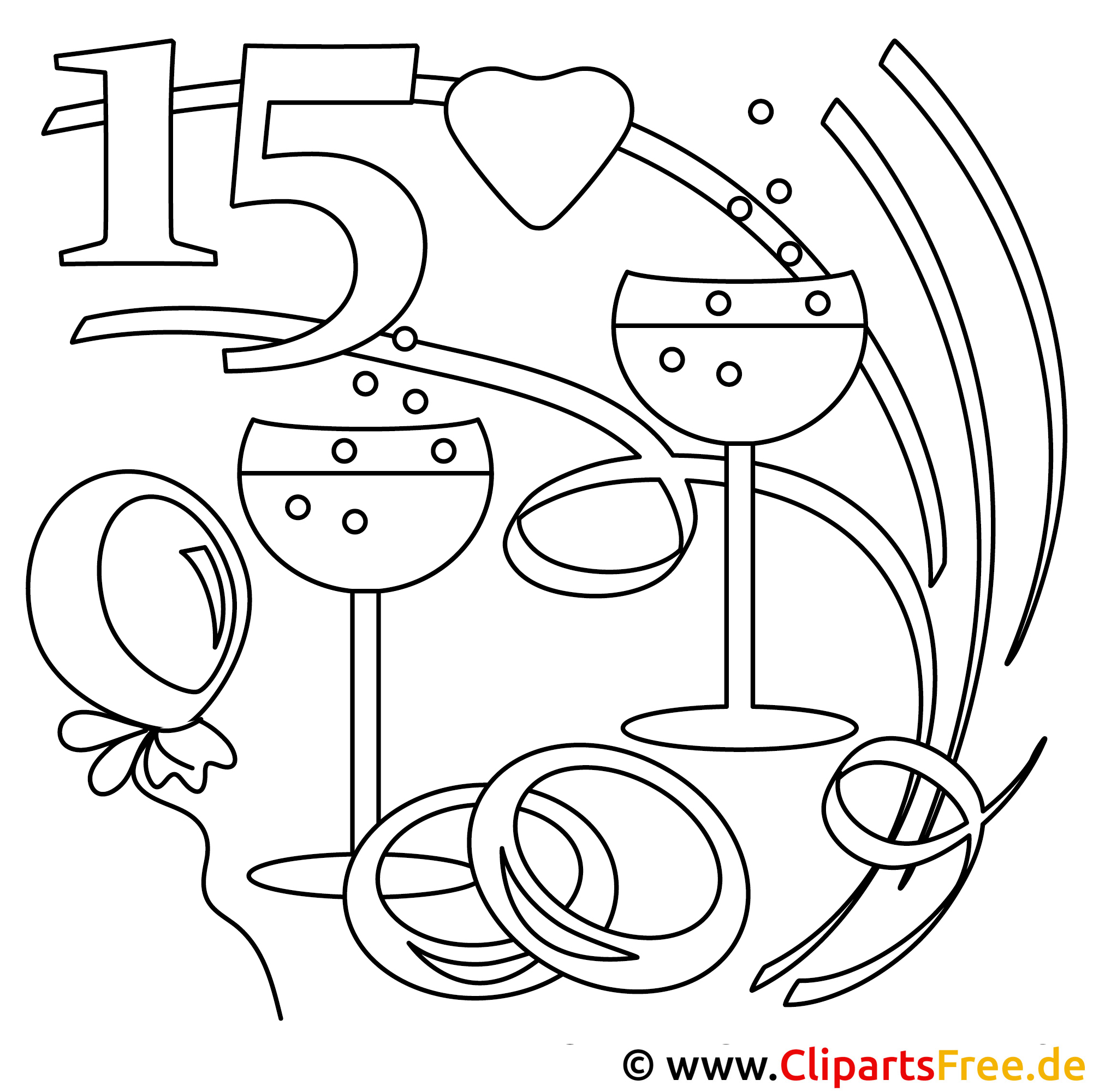 Das Ausmalbild begeistert mit festlichem Flair. Im Mittelpunkt stehen zwei Gläser, gefüllt mit schaumigem Getränk, das schon beim Anblick zum Feiern einlädt. Um die Gläser schwirren fröhliche Luftballons und bunte Kreise – alles strahlt Freude und eine gewisse Leichtigkeit aus. Die Zahl "15" sticht ins Auge, und ein herzförmiges Symbol rundet das Bild ab. Eve so unkompliziert, wirkt gleich alles viel festlicher. Ideal für besondere Anlässe, wie eine Geburtstagsfeier oder einen wichtigen Jahrestag.