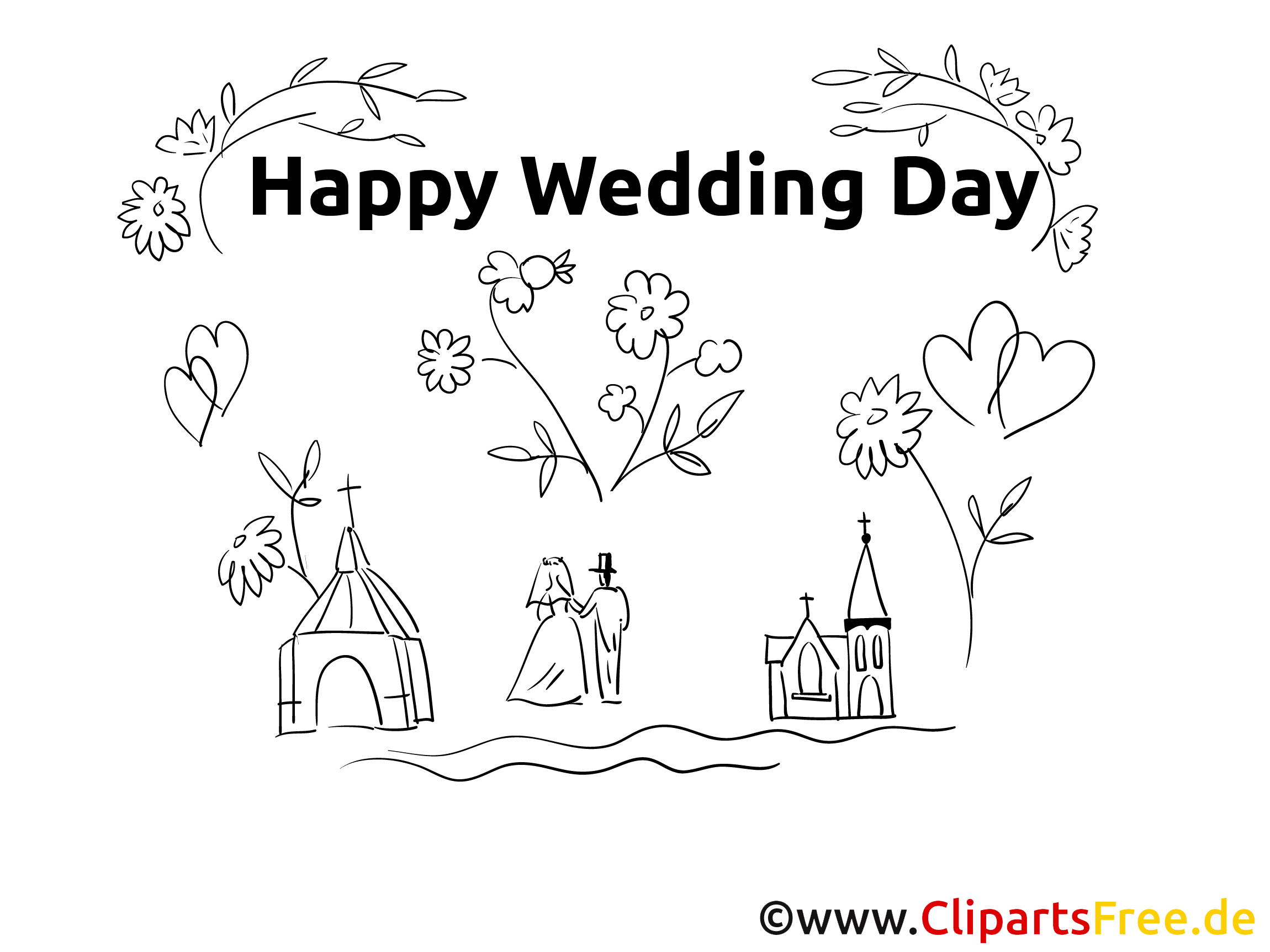 Hier haben wir ein ganz charmantes Ausmalbild, das sich perfekt für einen besonderen Anlass eignet – eine Hochzeit! Das Bild zeigt ein Brautpaar, das Hand in Hand steht. Daneben stehen kleine Kirchen und ein romantisches Herzmotiv. Überall kleine Blumen und zarte Blätter, die dem Bild einen liebevollen Touch verleihen. Echt toll, oder? Die Schrift „Happy Wedding Day“ darüber hebt die festliche Stimmung noch mehr hervor. Es vermittelt einfach eine fröhliche Atmosphäre!