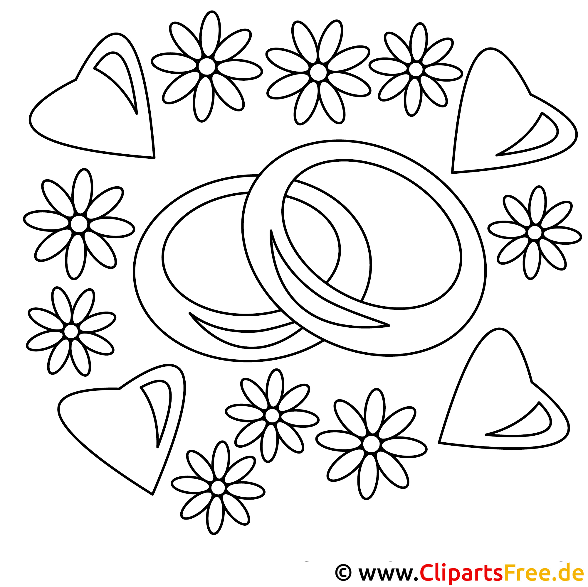 Dieses bezaubernde Ausmalbild zeigt zwei farbenfrohe Ringe und hübsche, fröhliche Blumen. Rund um die Ringe gruppiert sich eine Vielzahl niedlicher Herzen und kleine, elegante Blumen. Die Gestaltung wirkt insgesamt sehr harmonisch und lädt geradezu zum Ausmalen ein. Die verschiedenen Elemente machen es zu einem spannenden Bild, wo man kreativ sein kann! Ideal für Kinder, die gerne mit Farben experimentieren.