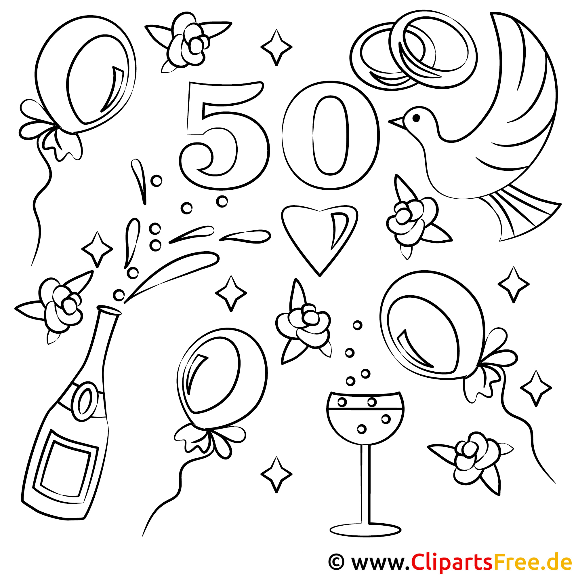 Oh, Schaut mal! Dieses Ausmalbild ist eine wunderbare Darstellung, die ganz im Zeichen des Feierns steht. Man sieht eine große „50“, die sicherlich zu einem besonderen Jubiläum gehört. Dazu gesellen sich viele bunte Luftballons, die fröhlich in verschiedene Richtungen zeigen. Natürlich dürfen auch eine Flasche Sekt und ein Gläschen nicht fehlen. Der kleine Vogel, der elegant fliegt, bringt eine feierliche Note dazu?!. Und überall um die Motive herum finden sich hübsche Blumen, die einfach nur bezaubernd wirken.... Es ist wirklich ein verspieltes Bild zum Ausmalen!