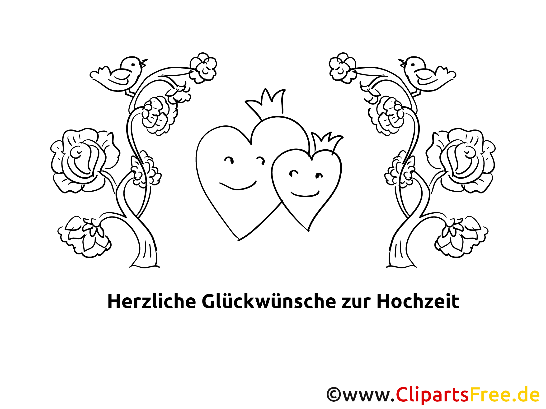 Dieses wunderschöne Ausmalbild zeigt zwei süße Herzen, die lächeln – sie strahlen so viel Freude und Liebe aus! Umrahmt von bunten, floralen Mustern und kleinen Vögeln, vermittelt es eine romantische Atmosphäre, die ideal zu Hochzeiten passt. Hier könnte man tatsächlich eine tolle, warme Botschaft schreiben. „Herzliche Glückwünsche zur Hochzeit“ steht groß und deutlich unter den Bildern. Die feinen Details der Blumen und Vögel bieten viel Platz für kreative Ideen, ganz praktisch für kleine Künstler oder Künstlerinnen.