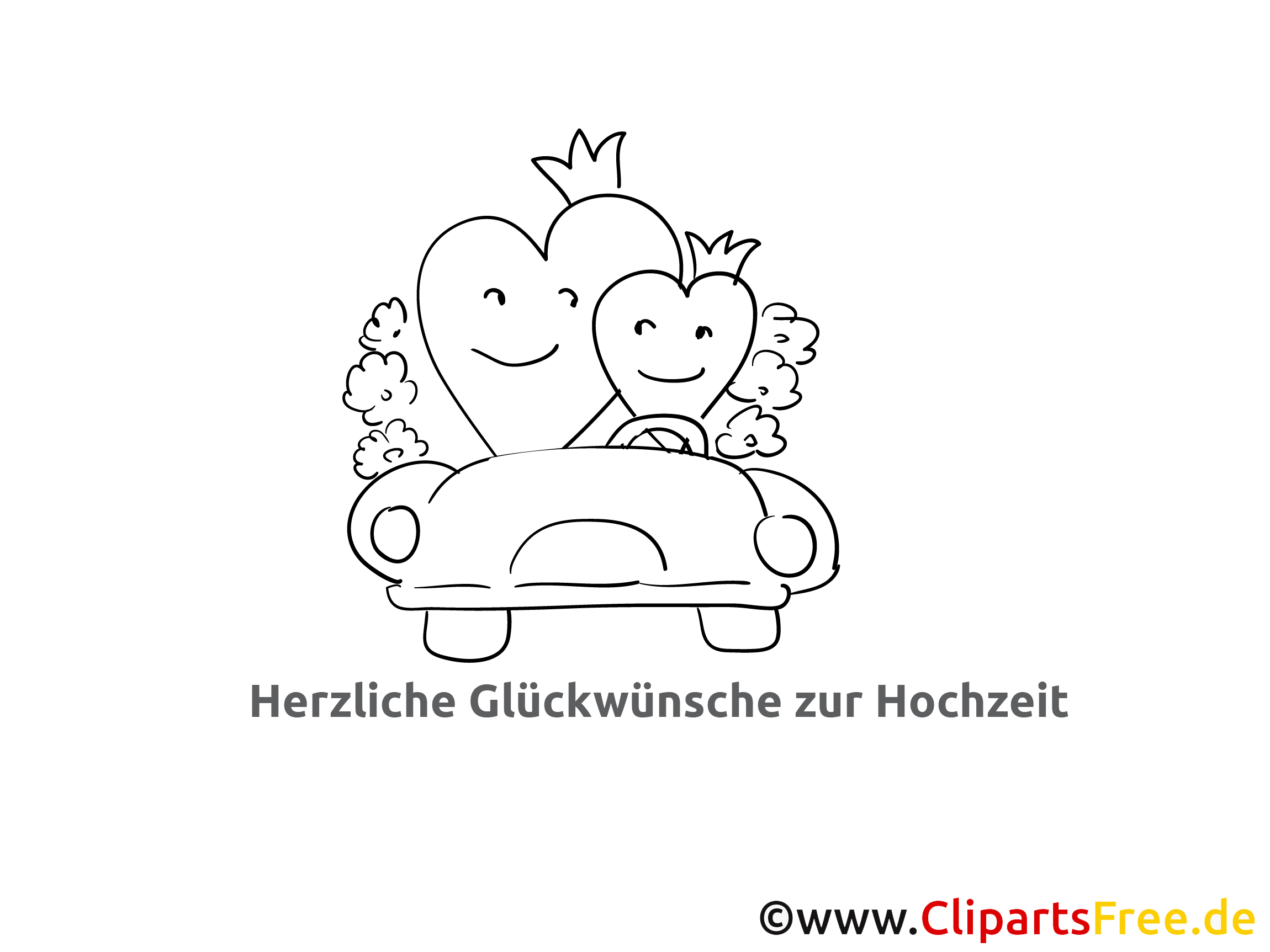 Das Bild zeigt ein fröhliches Hochzeitspaar, das sich in einem niedlichen Auto befindet. Die beiden Herzen lächeln sich glücklich an, während oben auf dem Fahrzeug eine kleine Krone sichtbar ist. Tolle Wolken und eine leuchtende Atmosphäre geben dem Bild einen verspielten, romantischen Touch. Es vermittelt sofort ein Gefühl von Freude und Feier. halt, Ideal für alle, die zur Hochzeit ihrer Freunde oder Familienmitglieder etwas Besonderes gestalten möchten. ähm,