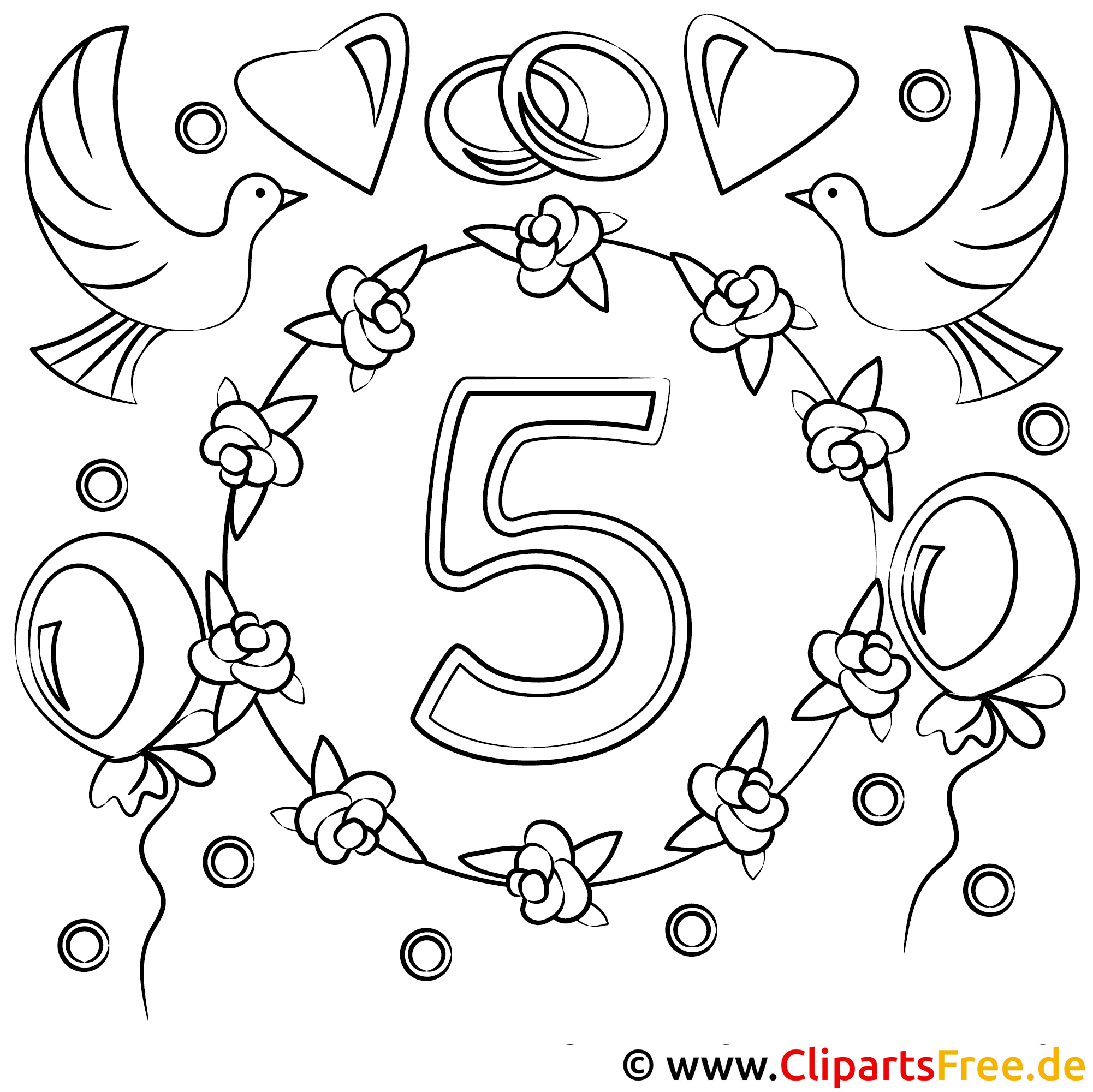 In diesem zauberhaften Ausmalbild findest du nicht nur die Zahl „5“, sondern eben auch jede Menge kleiner Details, die Freude und Feierlaune verbreiten. Einige nette Tauben fliegen um einen Blumenkranz, der die Zahl umgibt. Herzerwärmend, oder? Oben und unten sind zudem einige Ballons, die das Gesamtbild noch fröhlicher machen. Die sanften Blumen und die munteren Elemente geben dem Motiv einen positiven Schwung. weißt du, Perfekt, um die Kreativität gleich in Schwung zu bringen und die Farben sprudeln zu lassen!