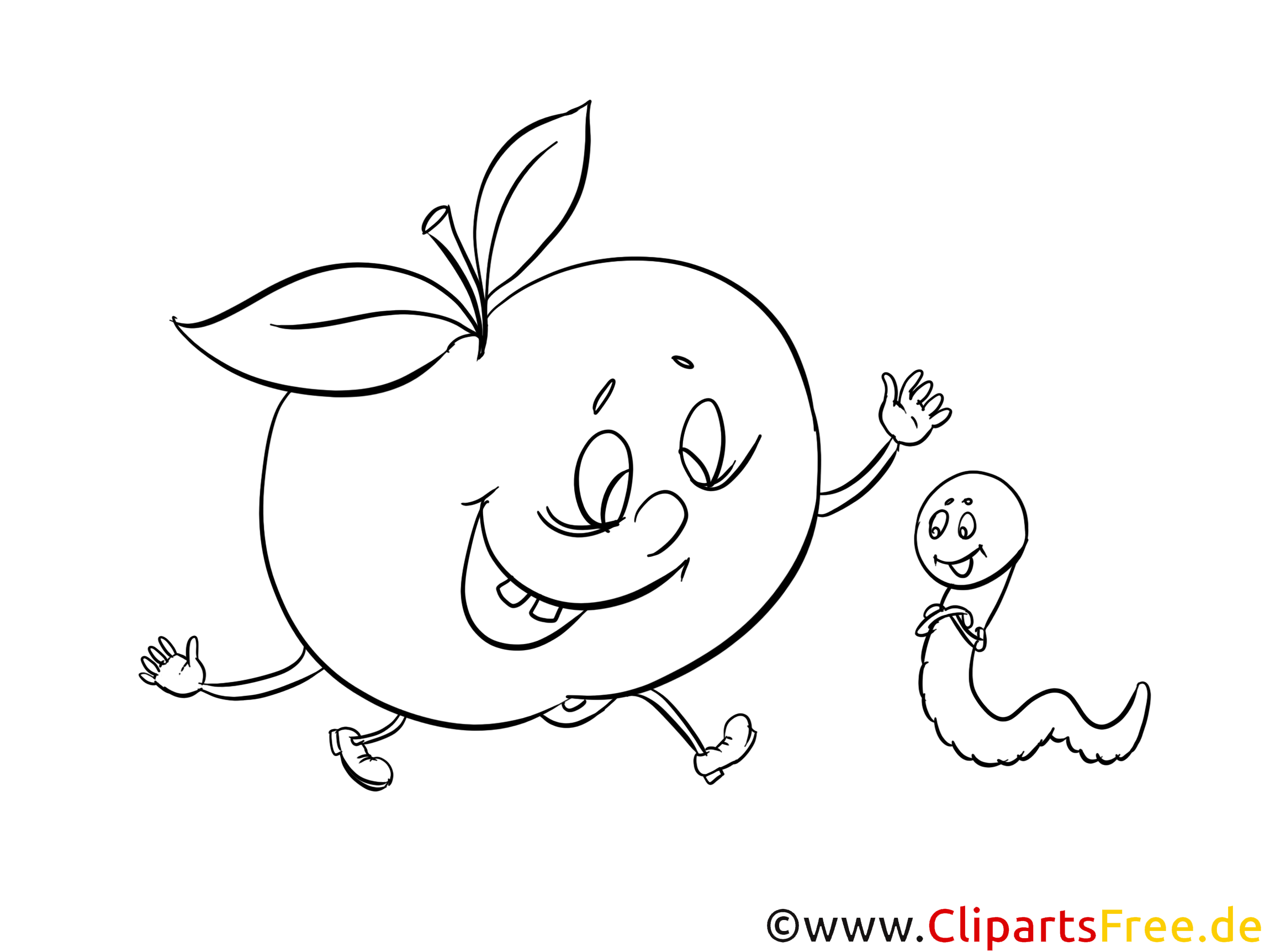 In dieser tollen Malvorlage begegnen wir einem fröhlichen, lächelnden Apfel, der so richtig in Bewegung ist! Er läuft! Ja, der Apfel hat offenbar viel Spaß und bringt die pure Lebensfreude zum Ausdruck. Und da ist auch noch ein kleiner Wurm, der ganz neugierig hinter ihm her krabbelt. Mit seinem süßen Gesichtchen und dem strahlenden Lächeln verbreitet der Wurm ebenso gute Laune. Es ist eine lebendige, positive Szene, die ideal für kleine Künstler geeignet ist. Der Apfel hat grüne Blätter und sieht so frisch aus – einfach zum Reinbeißen!