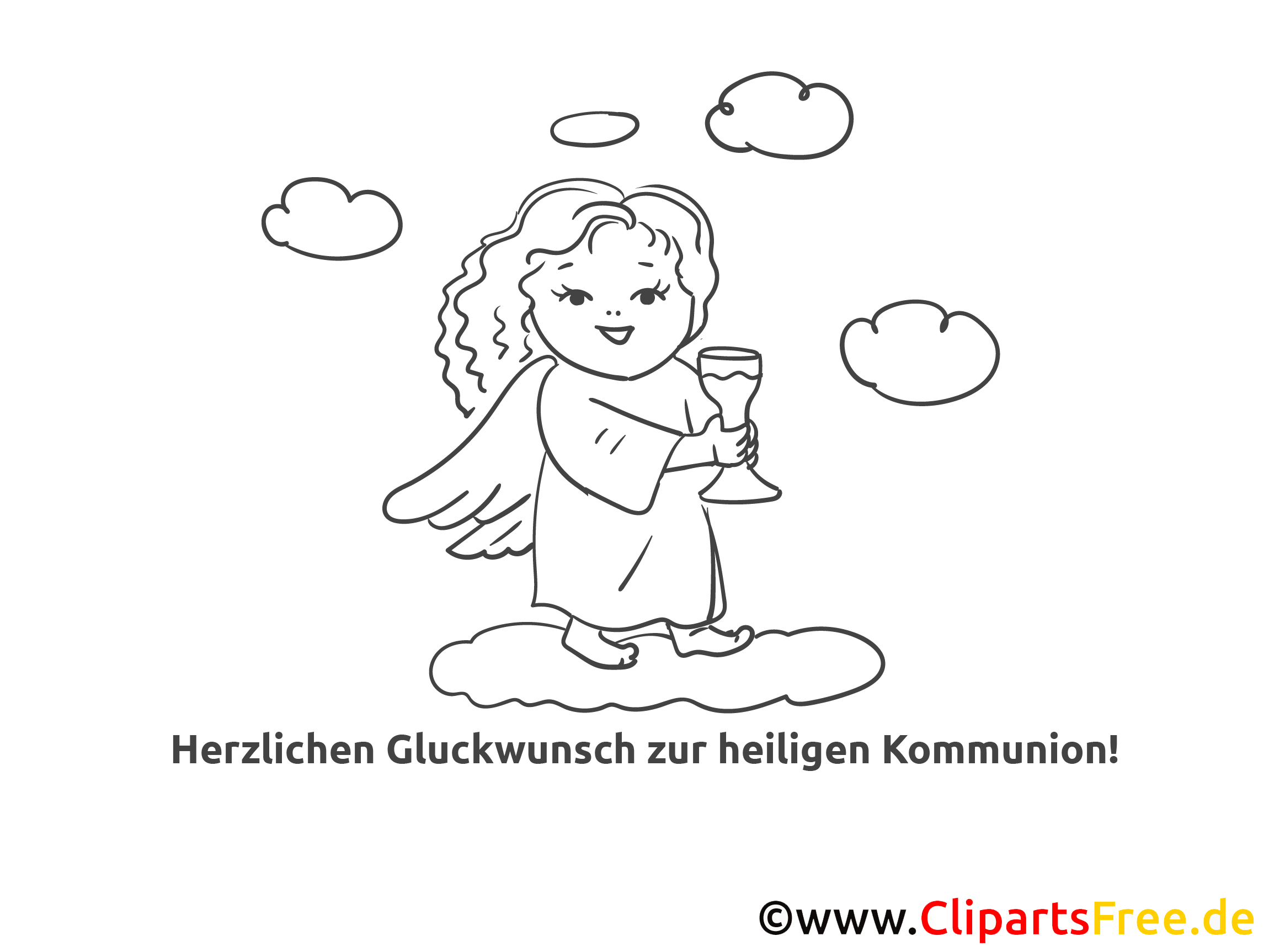 Das Ausmalbild zeigt einen fröhlichen Engel, der mit einem goldenen Kelch in der Hand auf einer Wolke sitzt. Neben ihm schweben ein paar fluffige Wolken, die dem Bild eine süße Note verleihen. Seine lächelnden Augen und die sanften Wellen der Haare machen ihn einfach sympathisch. Das Motiv beinhaltet zudem den Schriftzug „Herzlichen Glückwunsch zur heiligen Kommunion!“, was natürlich perfekt ist für diesen besonderen Anlass. Die ruhige, friedliche Ausstrahlung des Engels vermittelt das Gefühl von Freude und Hoffnung, ideal für Feierlichkeiten.