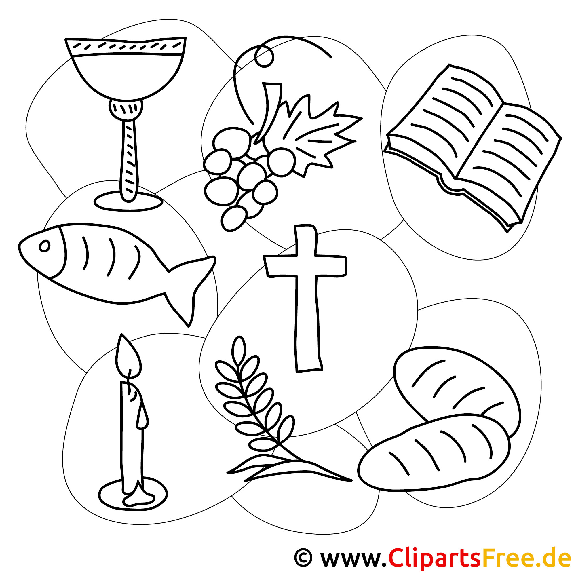 Das Ausmalbild zeigt eine anschauliche Zusammenstellung von wichtigen Symbolen, die viele Kinder für den Unterricht oder zu Hause spannend finden könnten. Hier gibt's zum Beispiel einen Kelch, fröhliche Trauben, ein Buch, einen Fisch, eine Kerze und ein Kreuz. Jedes dieser Motive verspricht, eine interessante Geschichte zu erzählen! Kinder können beim Ausmalen ihrer Kreativität freien Lauf lassen und gleichzeitig etwas über die Bedeutung der Symbole lernen. Ganz praktisch: Jedes Element füllt zwar den Raum, wirkt aber nicht überladen. ähm, Schöne Kombination, oder?