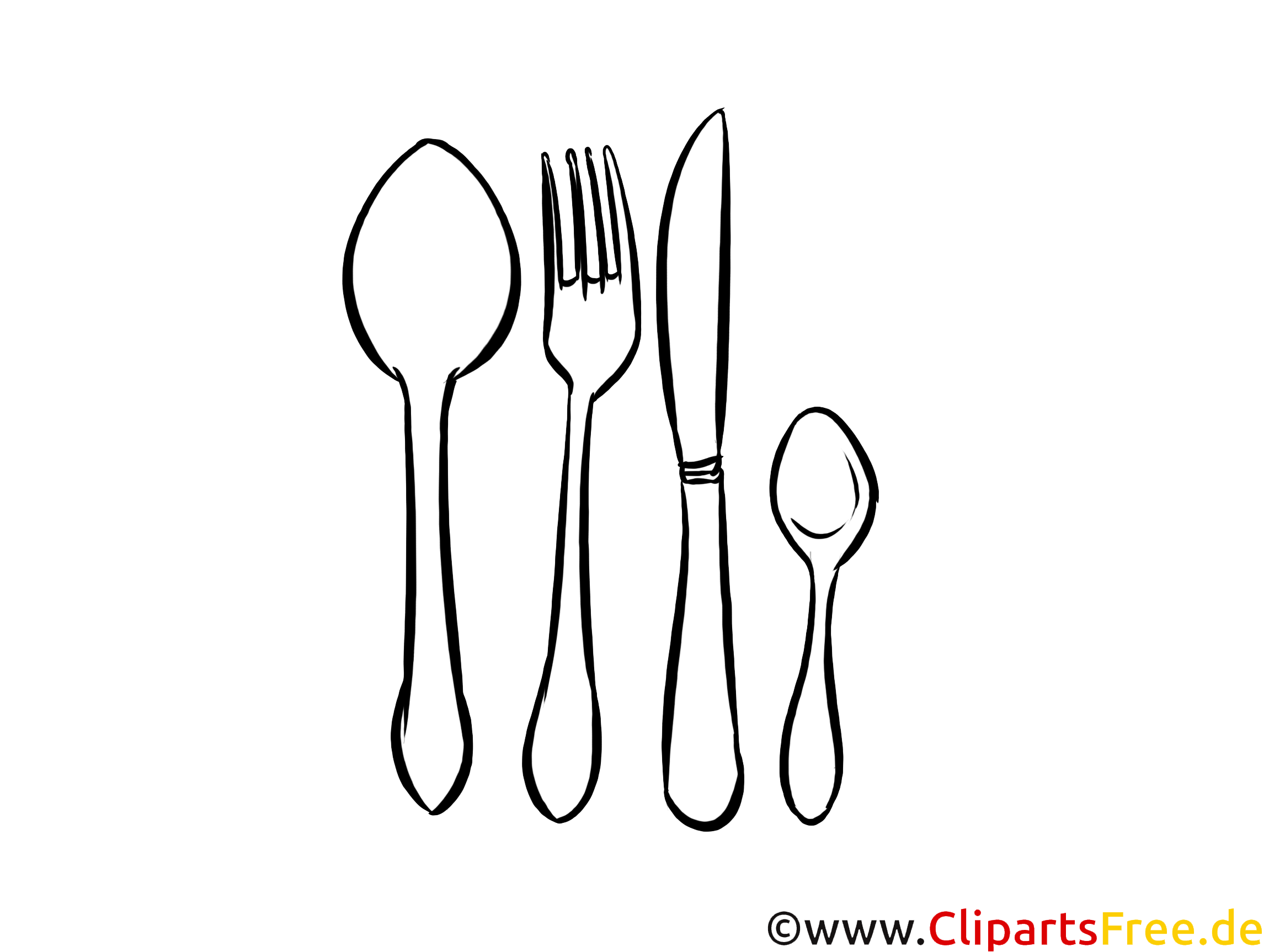 Hier sehen wir eine einfache, aber erkennbare Zeichnung von Besteck. Witzigerweise ist es nicht nur ein Löffel, sondern gleich zwei! Ein wirklich interessanter Mix aus einem großen Löffel, einer Gabel, einem scharfen Messer und dann noch einem kleinen Teelöffel. Die Formgebung ist gut gemacht, die Linien sind klar und ermöglichen es Kindern, hier kreativ zu werden. Vielleicht ist das Bild der Start für ein leckeres Gemeinschaftsessen, bei dem sich alle verletzen vor Lachen! Man könnte die Bestecke dann nach dem Ausmalen tatsächlich verwenden – also eine kreative Art, sich mit dem Tischdeckerset zu verbinden!