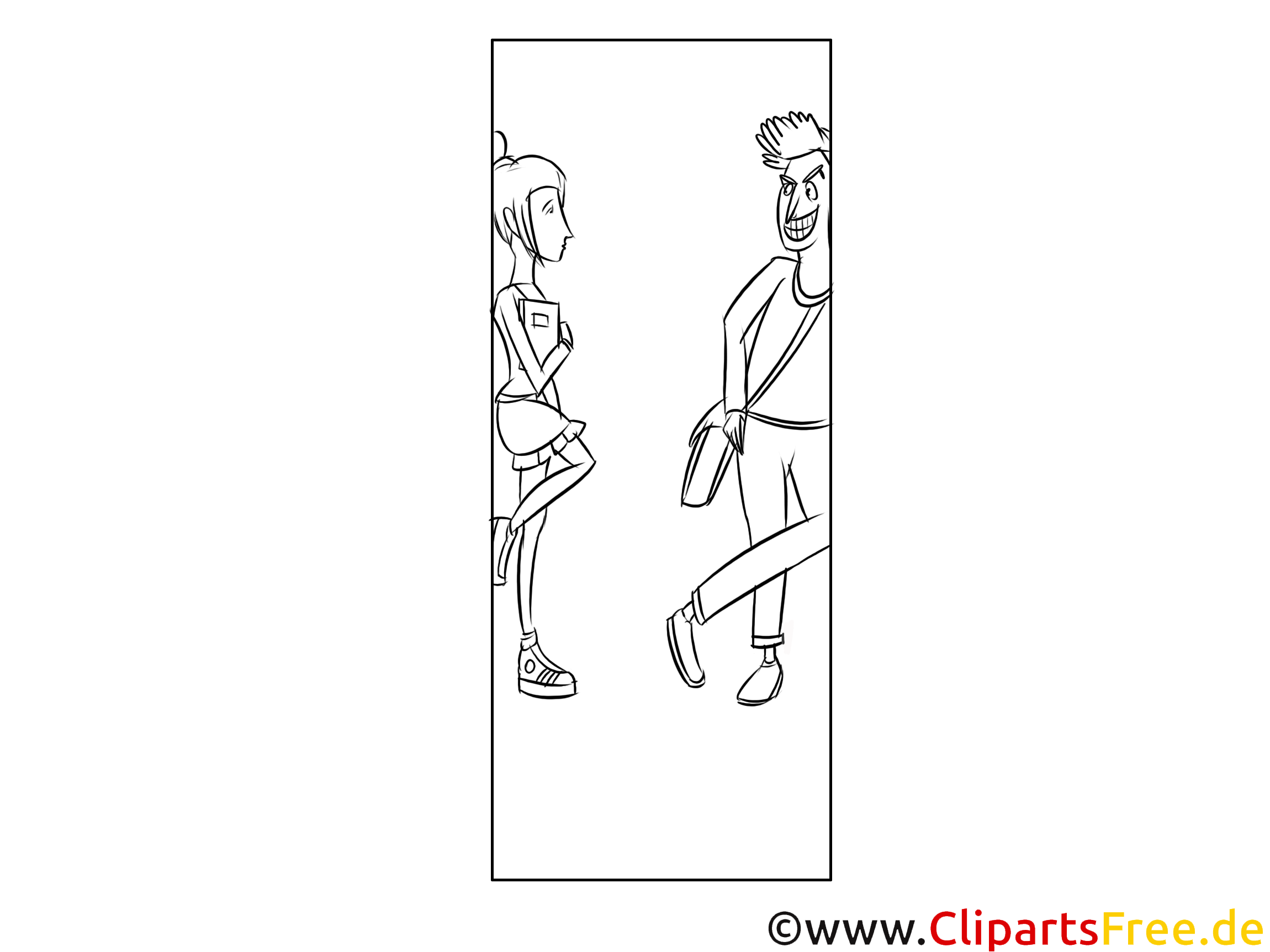 Das Ausmalbild zeigt zwei Freunde, die in einen hitzigen Dialog vertieft sind. Die Umgebung wirkt urban, vielleicht ist es eine lässige Straße oder ein Park. Die beiden Figuren, ein Junge und ein Mädchen, sehen so aus, als ob sie Spaß haben, vielleicht diskutieren sie über die neuesten Trends oder einen Scherz. Die Frisuren sind recht kreativ: der Junge hat lockige Haare und trägt eine entspannte Kleidung, während das Mädchen einen modernen Look mit einem T-Shirt und einem Rock hat. tja, Ihre Gesichtsausdrücke verraten einiges – es ist eine Mischung aus Freude und Neugier!
