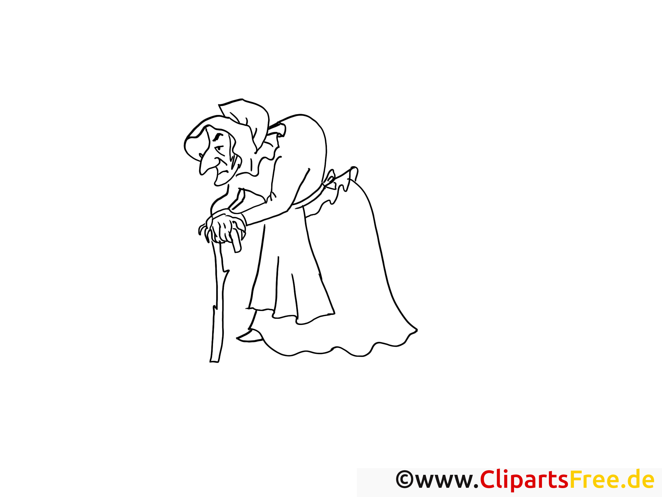 Alte Hexe aus dem Märchen Dornröschen Bild zum Ausmalen