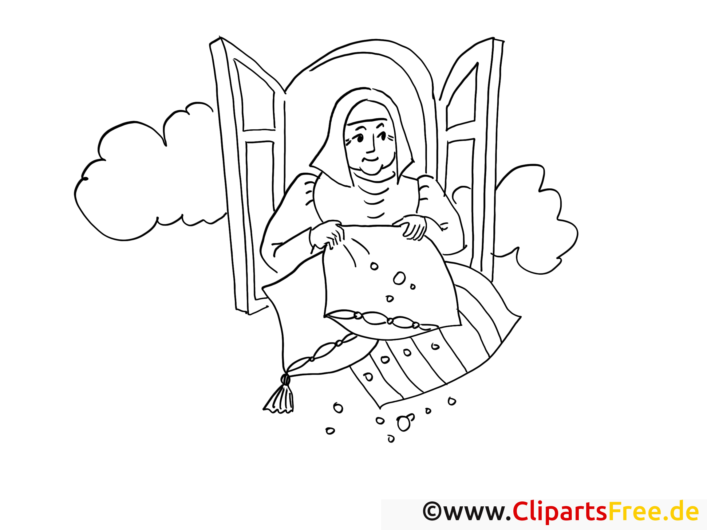 Frau Holle Märchen-Malvorlage zum Ausmalen