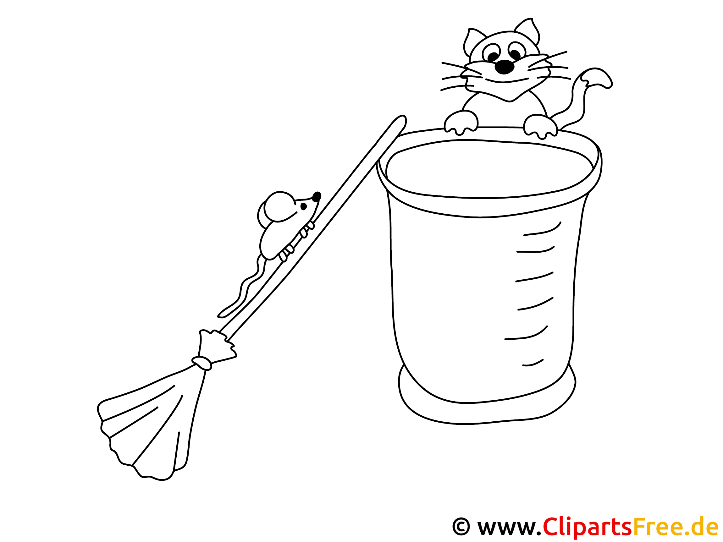 Stell dir vor! Eine kleine Maus, die mutig auf einem Besenstiel balanciert. Sie klettert rasant dem großen, schauenden Kätzchen entgegen, das ganz oben auf einem hohen Behälter sitzt. Das Kätzchen mit seinen großen, runden Augen sieht freundlich aus. Es scheint zu fragen: „Was machst du da oben, kleine Maus?” Der Kontrast zwischen dem tapferen kleinen Tierchen und dem großen, neugierigen Kätzchen schafft ein ganz besonderes Bild. Eine Geschichte, die gerade darauf wartet, ausgemalt zu werden!