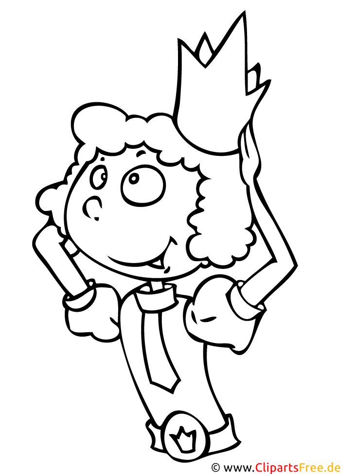 Schau mal! Hier haben wir ein tolles Ausmalbild von einem fröhlichen kleinen König oder vielleicht einer Königin. Die Figur hat einen lustigen, großen Kopf mit viel lockigem Haar. Da ist diese süße Krone – ach, die Blätter oben sind wirklich spitz! Das Kostüm sieht nach Spaß aus, die Farben... na, die müssen ja noch reinkommen, oder? Ganz ehrlich, jeder, der das Bild anschaut, möchte sofort Stifte nehmen und loslegen. Der Ausdruck der Figur zeigt eine große Neugier und vielleicht auch ein wenig Stolz. Perfekt für die Kinder, um ihrer Fantasie freien Lauf zu lassen!