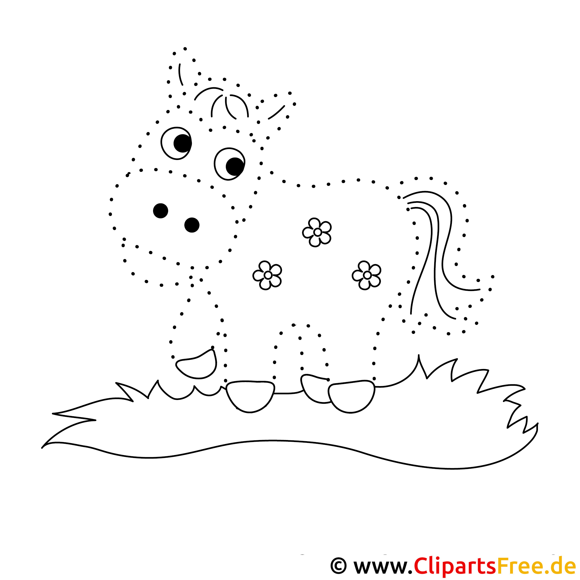 Hier haben wir ein putziges kleines Pony, das auf einer saftigen Wiese steht. Mit großen, neugierigen Augen und einem fröhlichen Gesicht, lädt es geradezu zum Ausmalen ein! Zu sehen sind auch einige hübsche Blümchen auf seinem Körper – das macht es besonders niedlich. Die gesamte Szenerie wirkt ganz entspannt und harmonisch, perfektes Bild zum Ausmalen für Kinder.