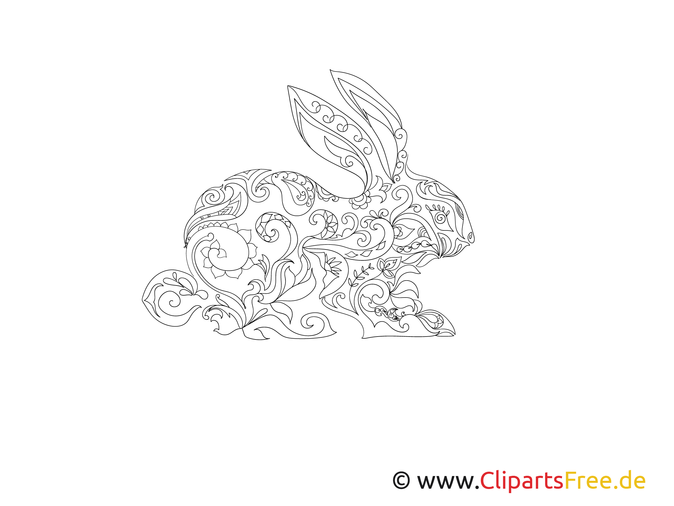Kaninchen, Hase Ausmalbild für Erwachsene Tiere