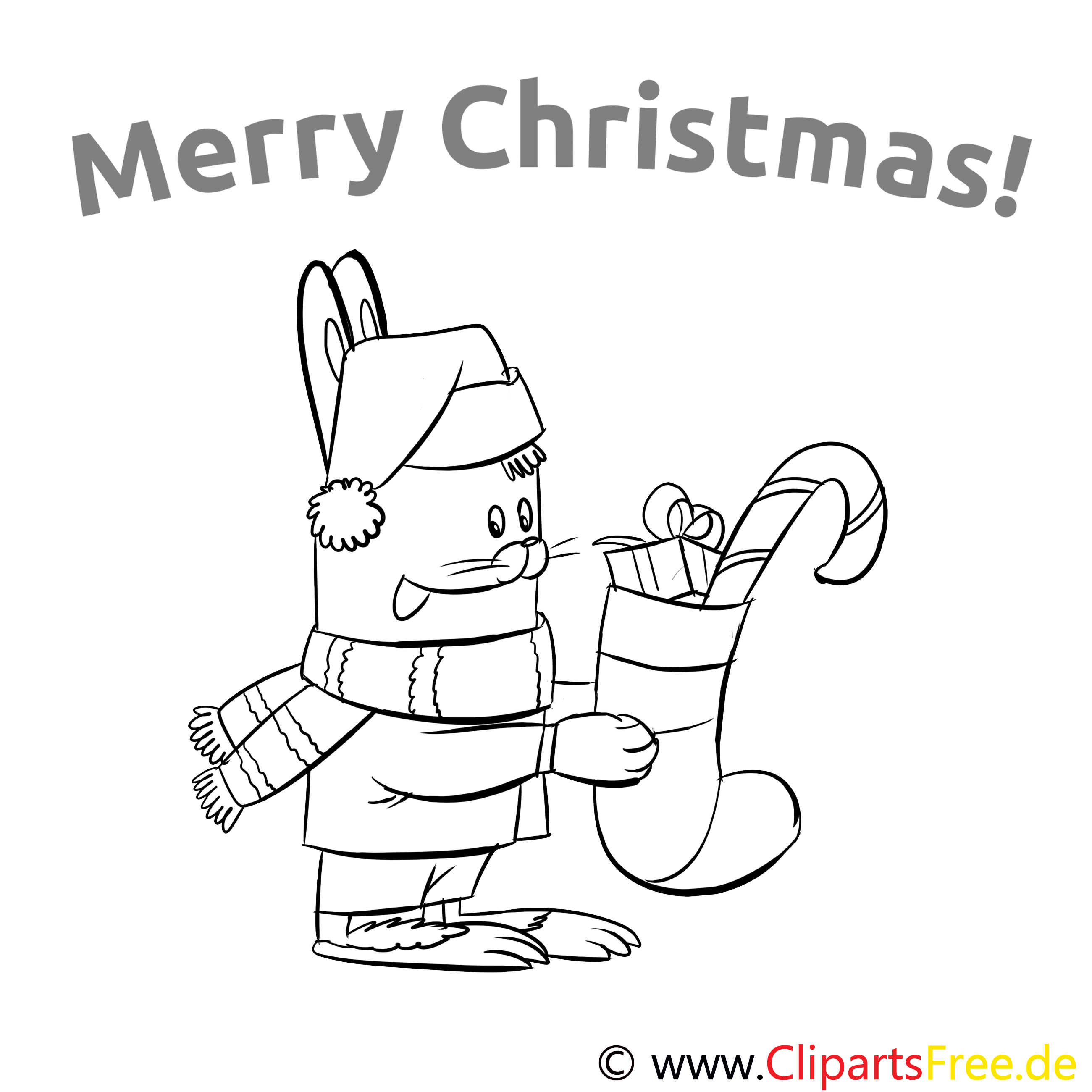 Kostenloses Ausmalbild Hase im Weihnachtsoutfit als PDF Malvorlage