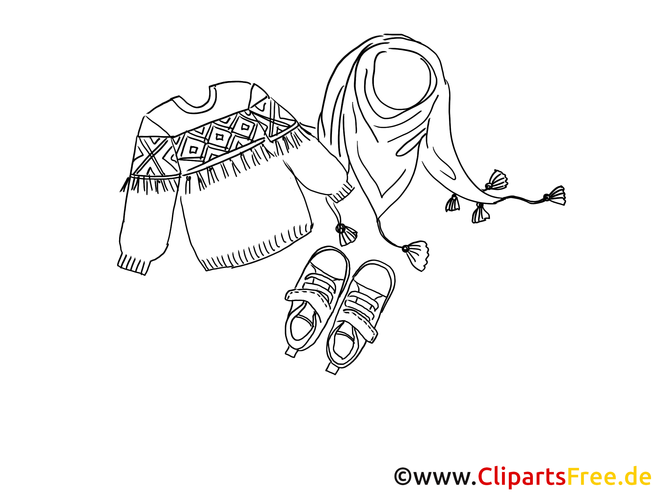 Kostenloses Ausmalbild Pullover und Schuhe als PDF Malvorlage
