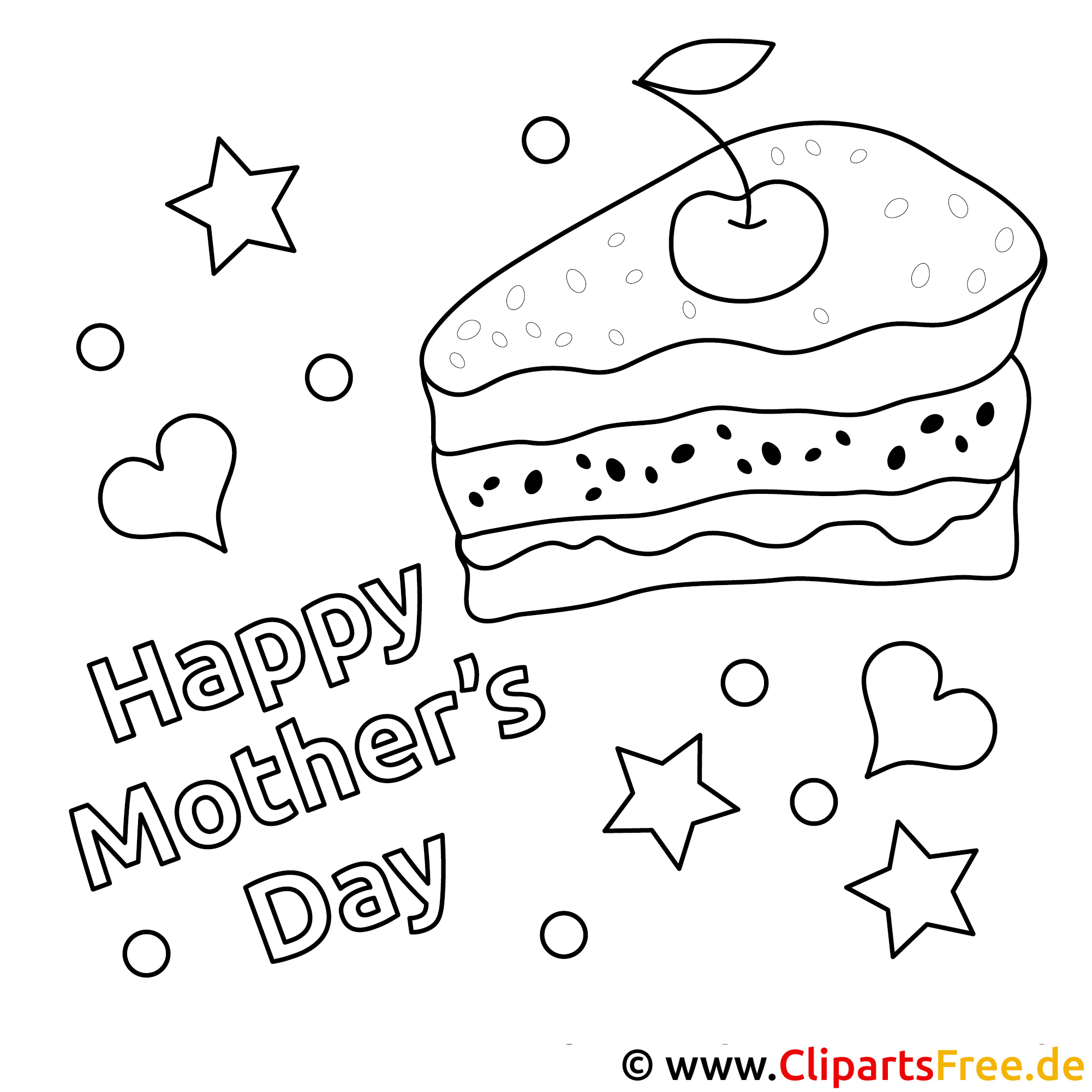 Schau dir mal dieses lustige Ausmalbild an! Ein köstliches Stück Kuchen mit einer süßen Kirsche obendrauf, das ist einfach zum Anbeißen! Neben dem Kuchen findest du ein paar liebevolle Herzen und schicke Sterne. Und ehrlicherweise – die ganze Gestaltung bringt direkt eine fröhliche Stimmung mit sich, perfekt für den Muttertag! Außerdem steht da: "Happy Mother's Day". Es ist so ein schöner Weg, um deiner Mama zu zeigen, wie wichtig sie dir ist.