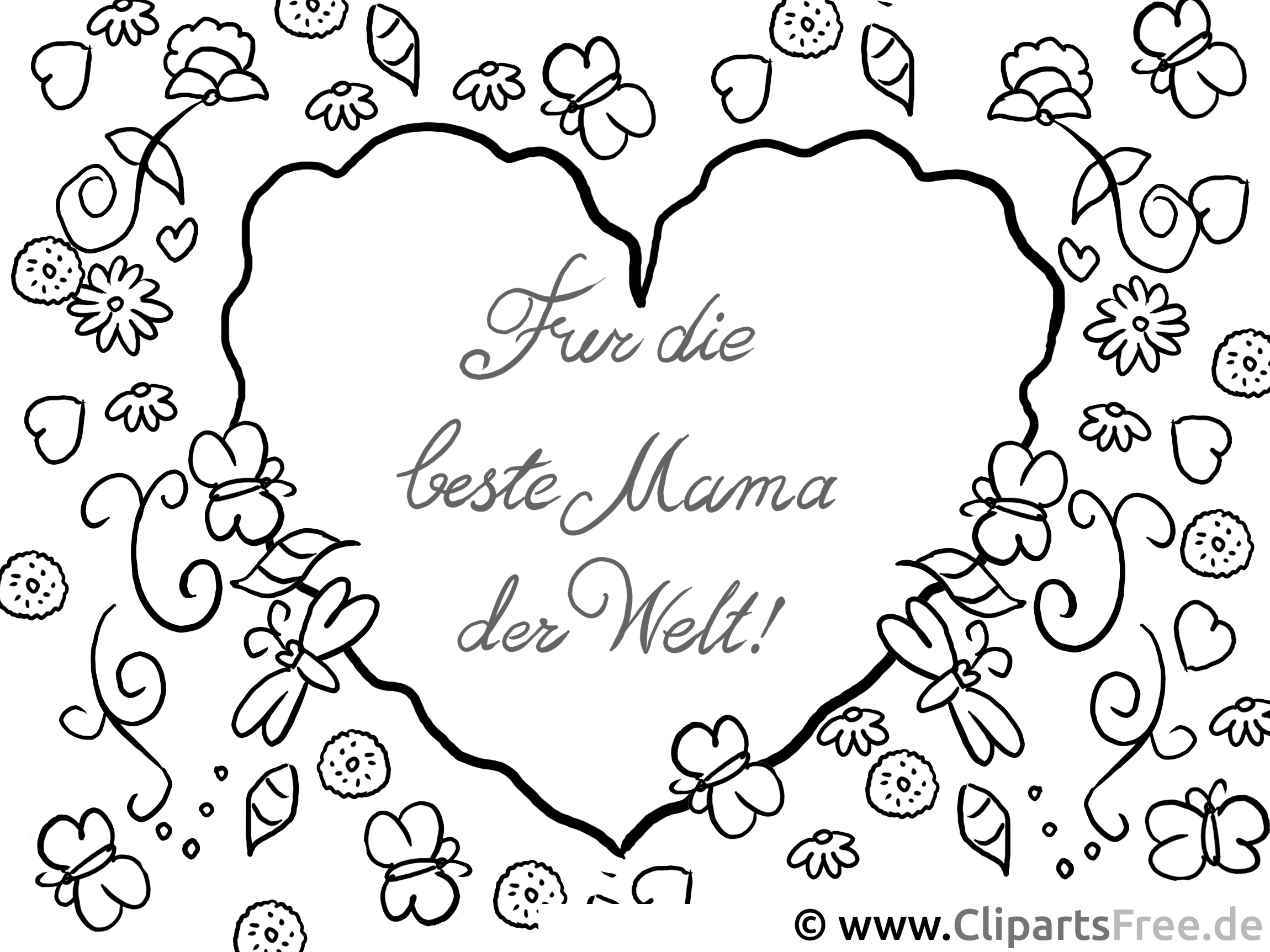 Original-Bild: Kostenloses Ausmalbild Herz für Mama als PDF Malvorlage gratis