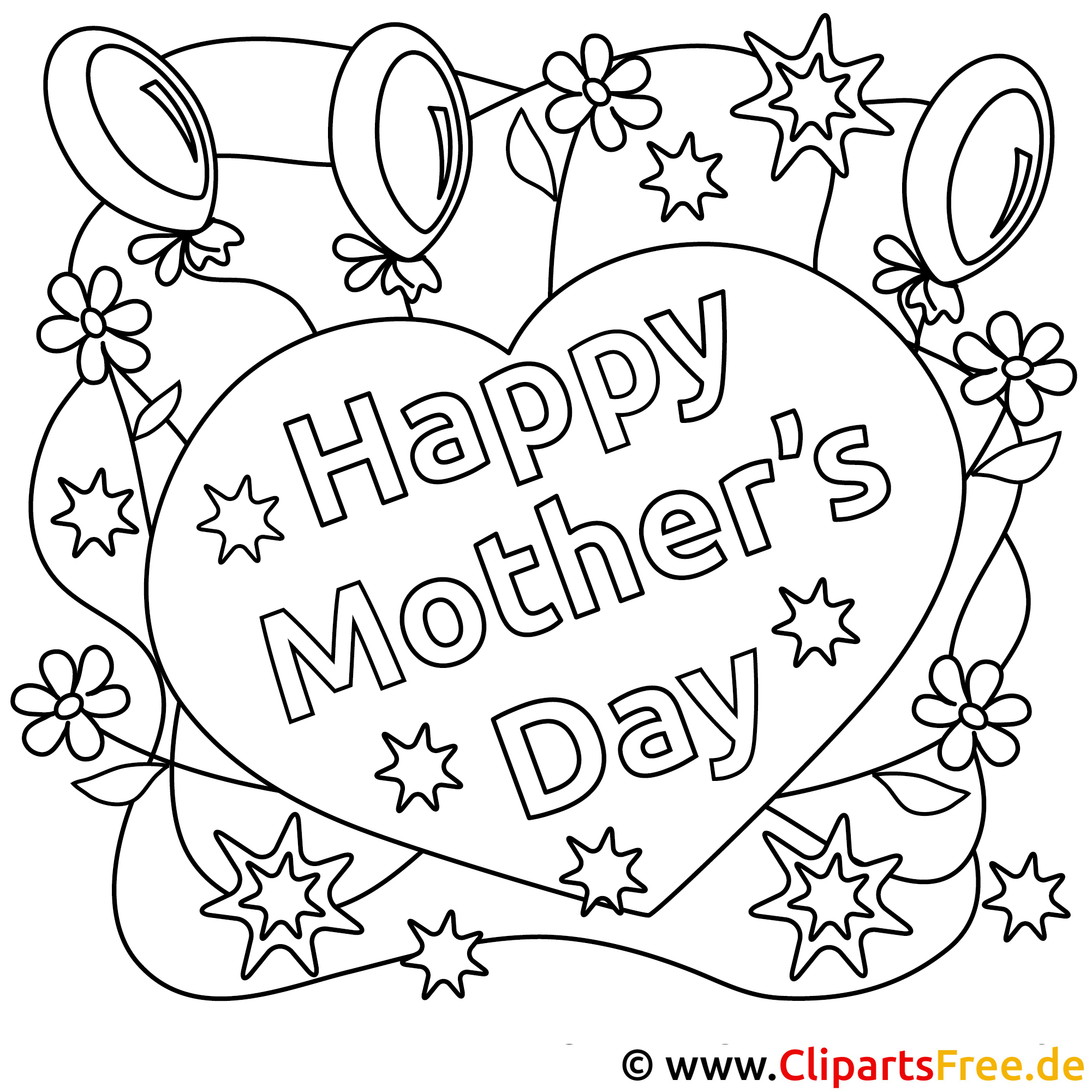 Das Motiv zeigt ein Herz, ganz groß und prominent, umgeben von fröhlichen Ballons und hübschen Blumen. In der Mitte steht „Happy Mother’s Day“ – eine liebevolle Botschaft, die einfach perfekt für den Muttertag ist. Die Sterne und Blumen sorgen für eine fröhliche Stimmung, machen das Bild zum echten Hingucker. Übrigens, die vielen kleinen Details laden regelrecht zum Ausmalen ein, was das Bild besonders spannend macht.