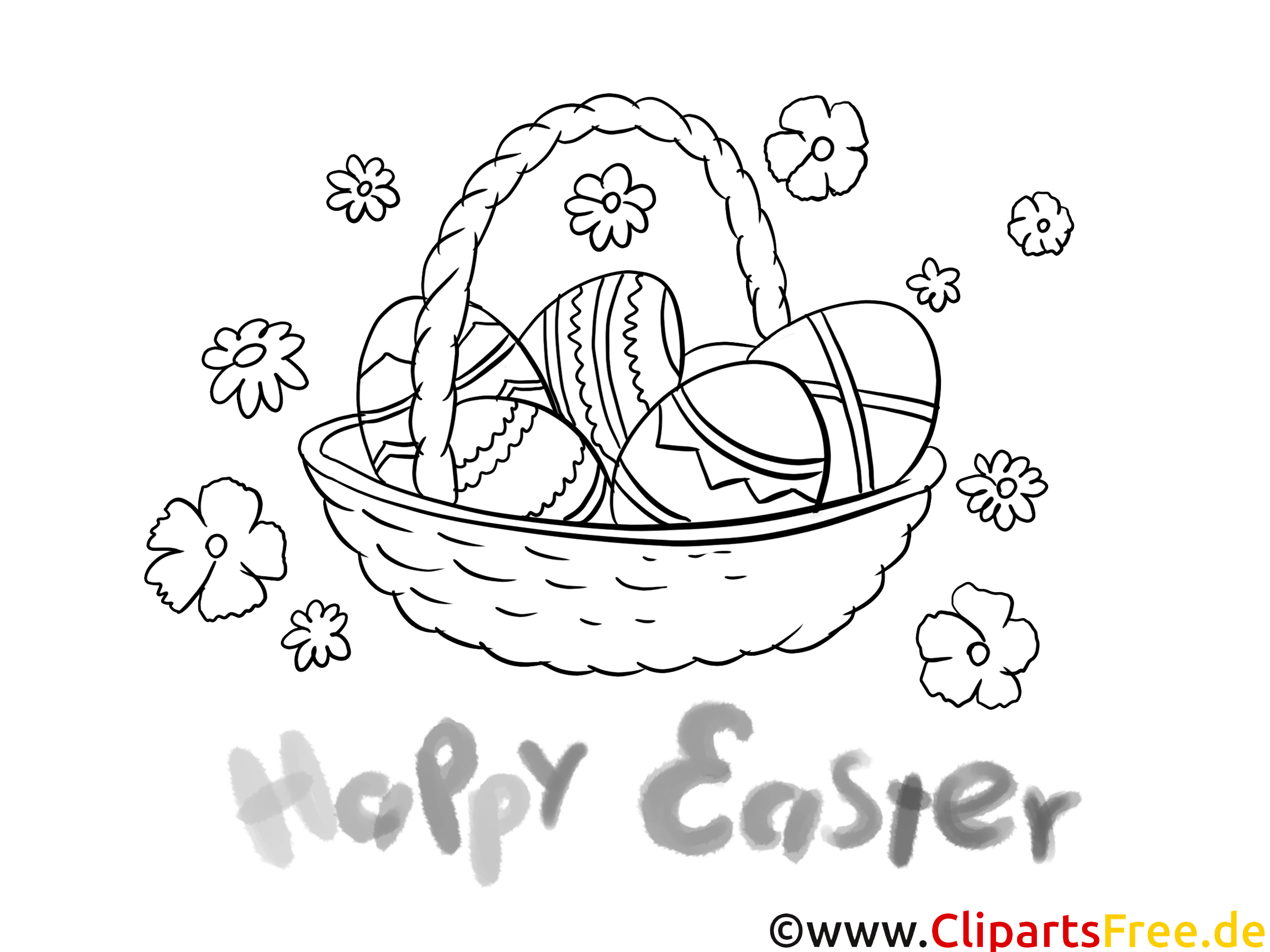 Kostenloses Ausmalbild Osterkorb mit bunten Eiern als PDF