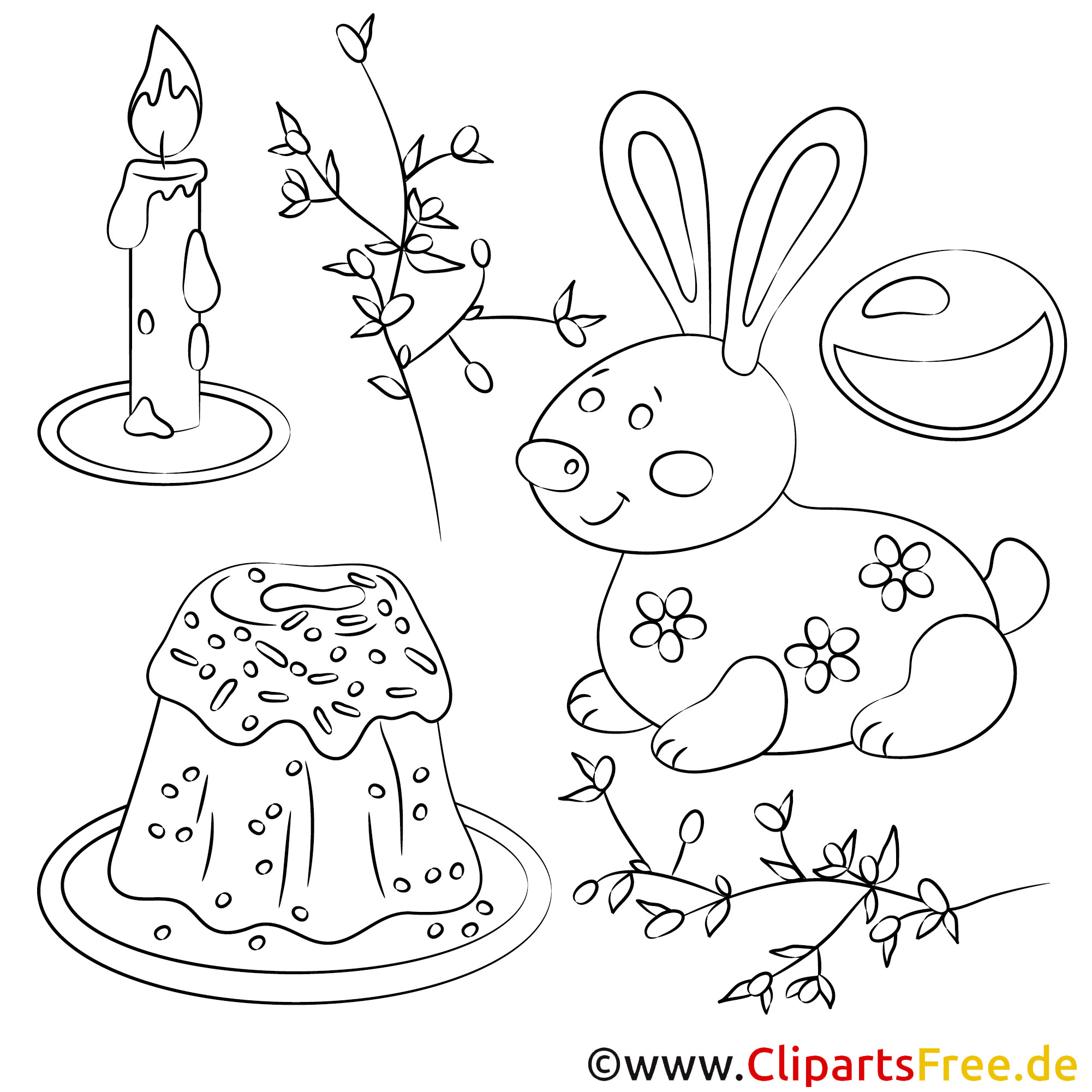 Das Ausmalbild zeigt eine fröhliche Szene, die ganz nach Frühling und Festlichkeit aussieht. Ein niedlicher Hase, der eine verspielte Haltung hat, lächelt freundlich. Er trägt bunte Blümchen auf seinem Körper – wirklich süß, oder? Dazu kommt eine gemütliche Kerze, die vielleicht schon ein bisschen geschmolzen ist und eine wackelige Pudding-Form, die appetitlich wirkt. Ein paar zauberhafte Zweige umrahmen die gesamte Illustration und erwecken den Eindruck von frischem Grün. Und dann, das bunte Ei – das fehlt natürlich nicht!