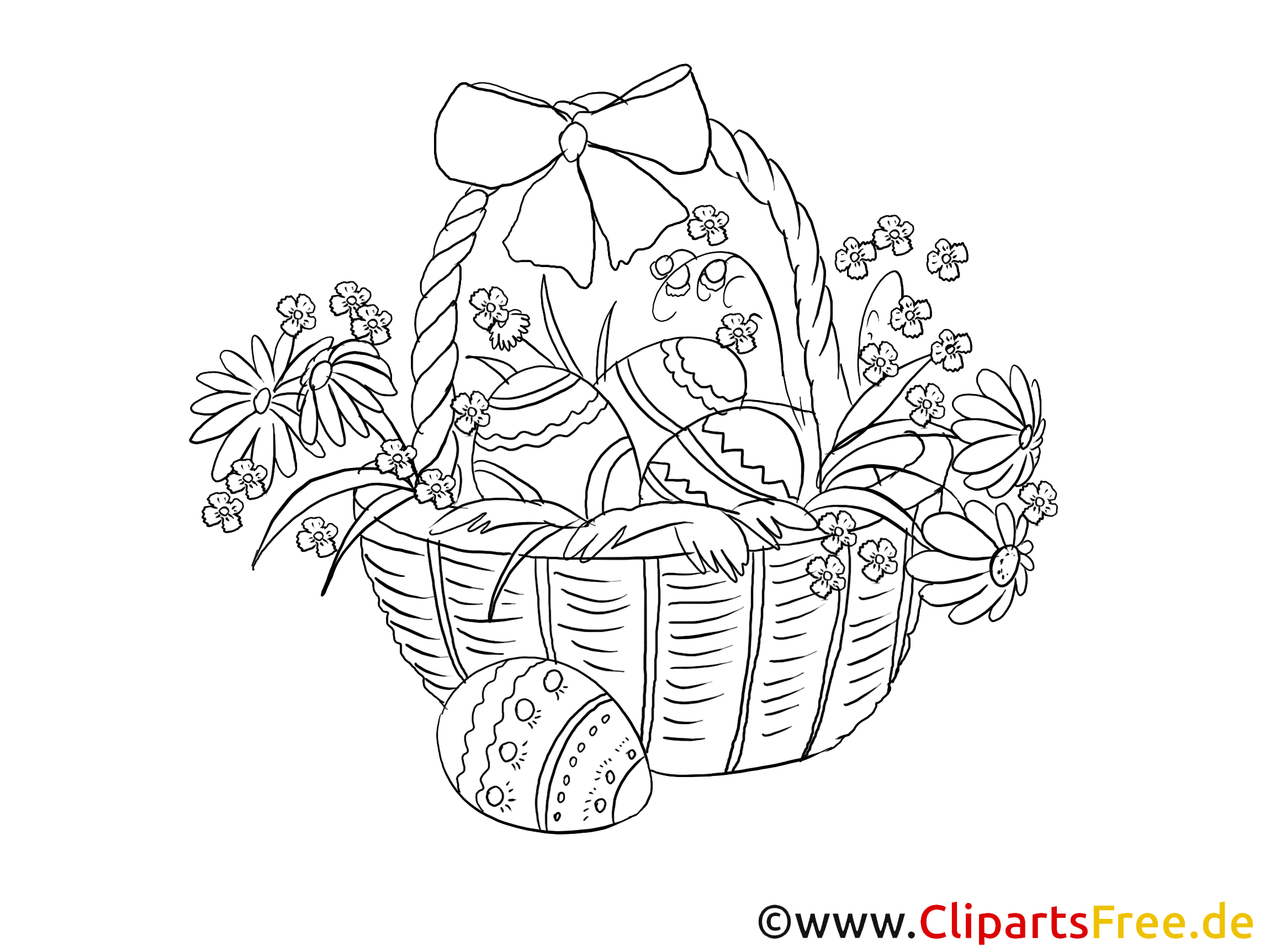 Kostenloses Ausmalbild Blumenkorb mit Ostereiern als PDF downloaden
