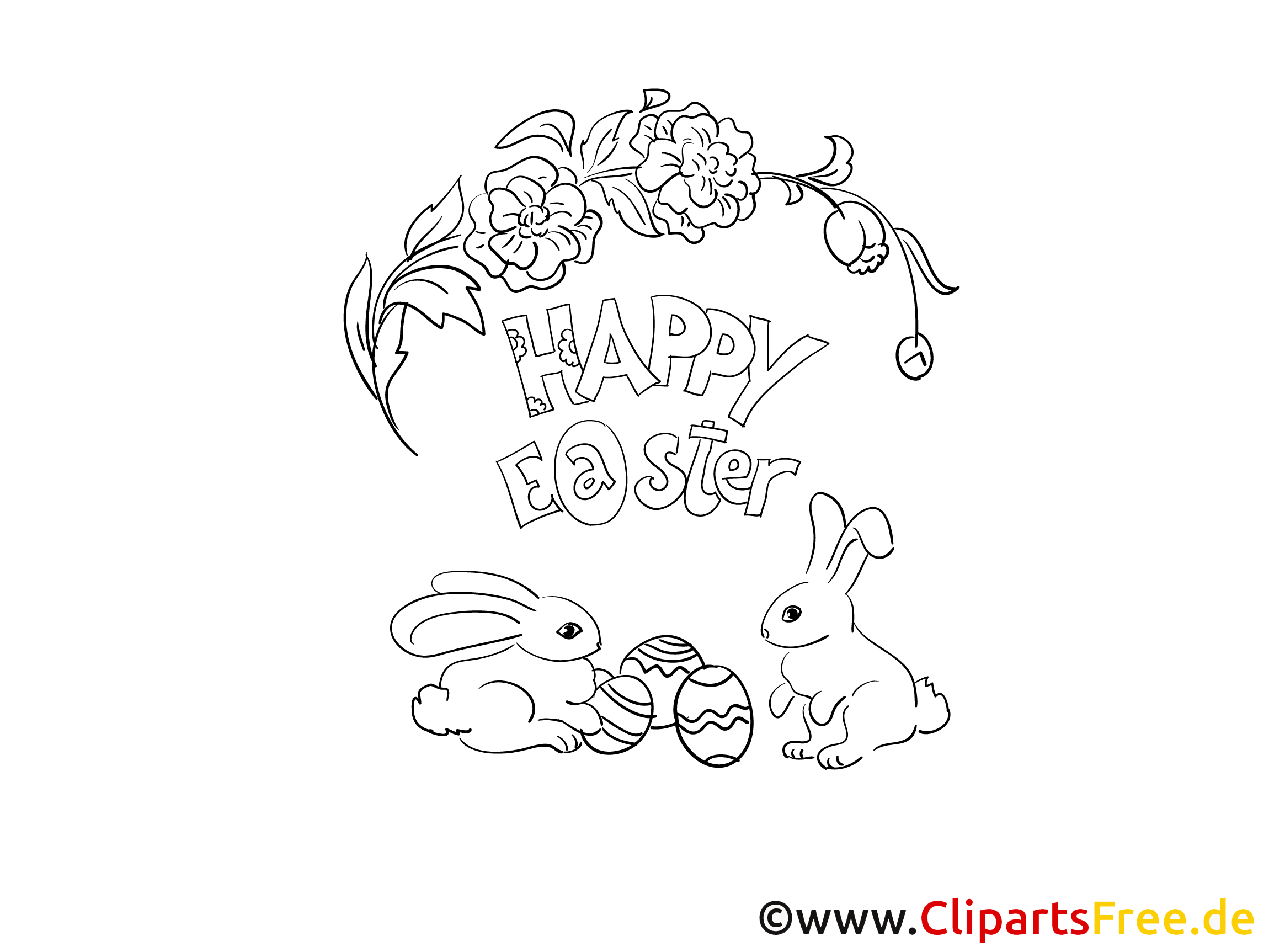 Kostenloses Ausmalbild mit Hasen und Ostereiern als PDF herunterladen