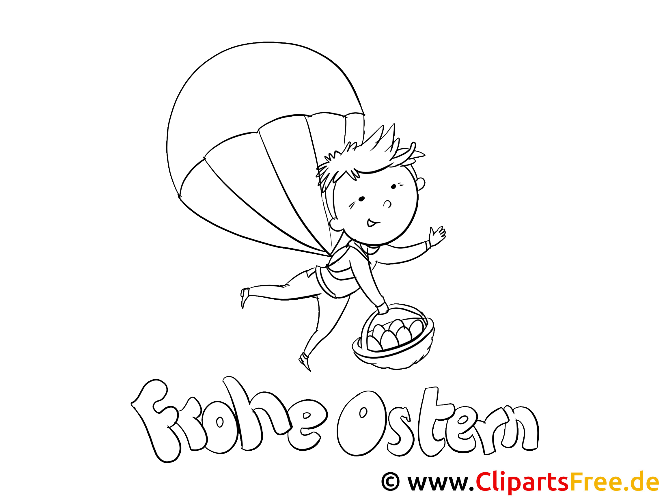 Stell dir vor: Ein strahlendes Kind schwebt mit einem bunten Fallschirm durch die Luft! In einer Hand hält es einen Korb, gefüllt mit Ostereiern, und das große Lächeln auf seinem Gesicht sagt einfach alles. Der Hintergrund ist leer, sodass du viel Platz hast, um deine eigenen Ideen zu verwirklichen. Die Ausmalvorlage sorgt für eine fröhliche Stimmung und erinnert uns daran, wie viel Spaß Ostern machen kann.