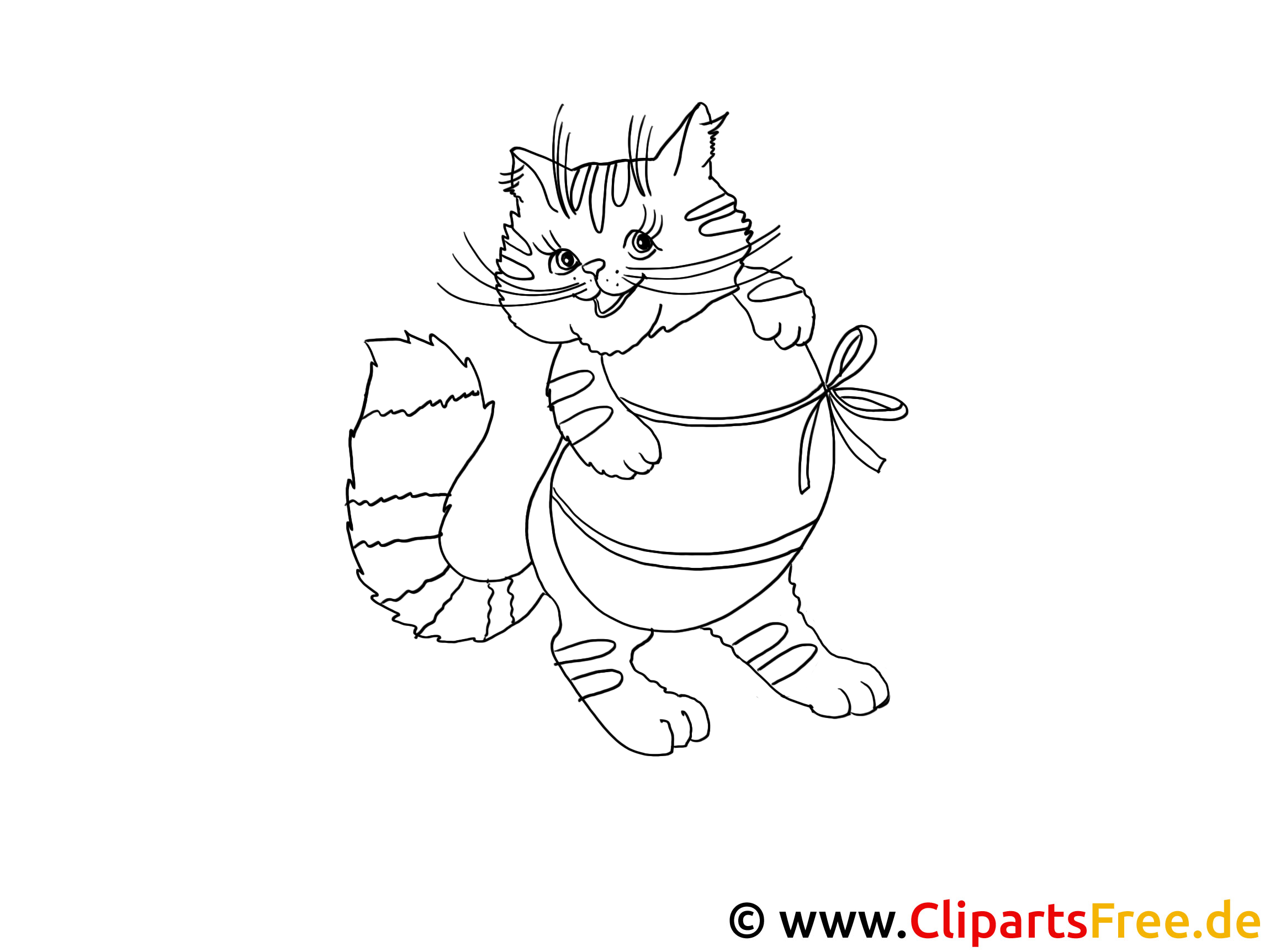 Schau dir dieses süße Ausmalbild an! Es zeigt eine fröhliche Katze, die ganz niedlich aussieht. Die kleine Mieze hat große, runde Augen und katzenhafte whiskers, die fast zum Schmunzeln einladen. Eine Schleife um ihren Bauch – so hübsch! Sie scheint, als würde sie gerade ein kleines Abenteuer erleben, vielleicht auf der Suche nach dem nächsten Snack oder einem neuen Freund. Dieses Bild wird nicht nur Kinder, sondern auch Katzenliebhaber begeistern.