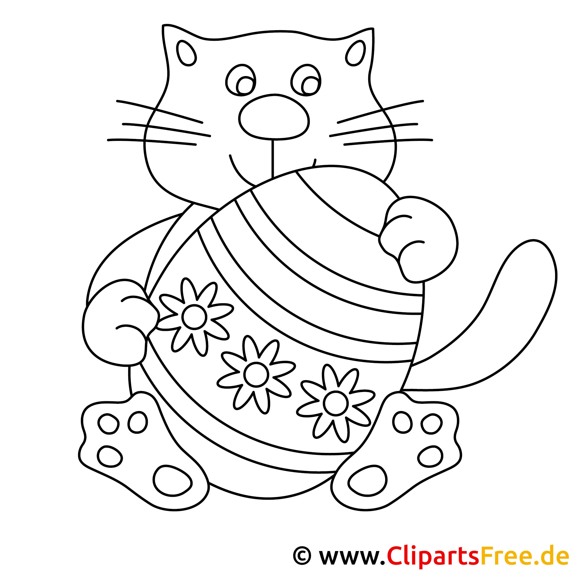 Kostenloses Ausmalbild Katze mit Osterei - Malvorlage im PDF