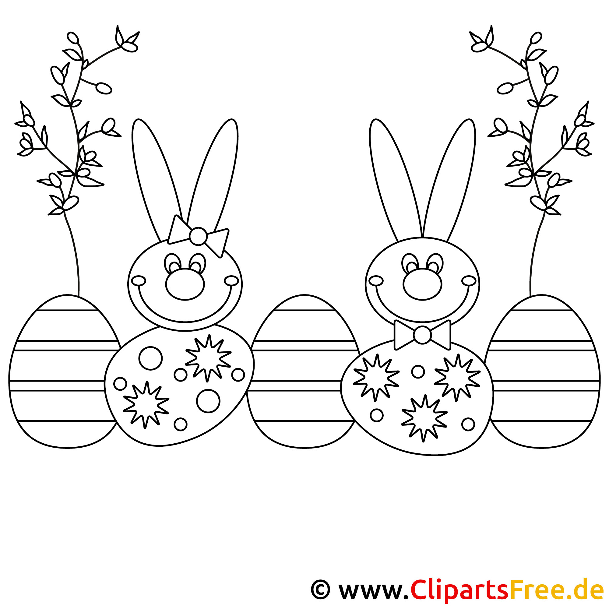 Kostenloses Ausmalbild mit Hasen und Ostereiern im PDF-Format