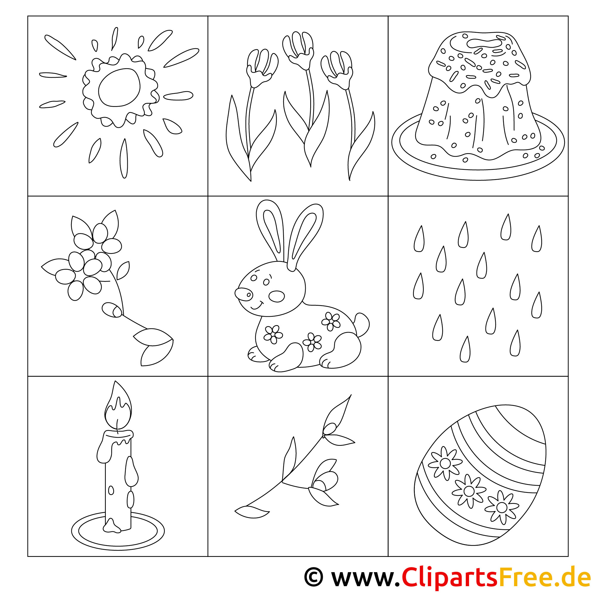 Kostenloses Ausmalbild mit Ostermotiven als PDF zum Ausdrucken