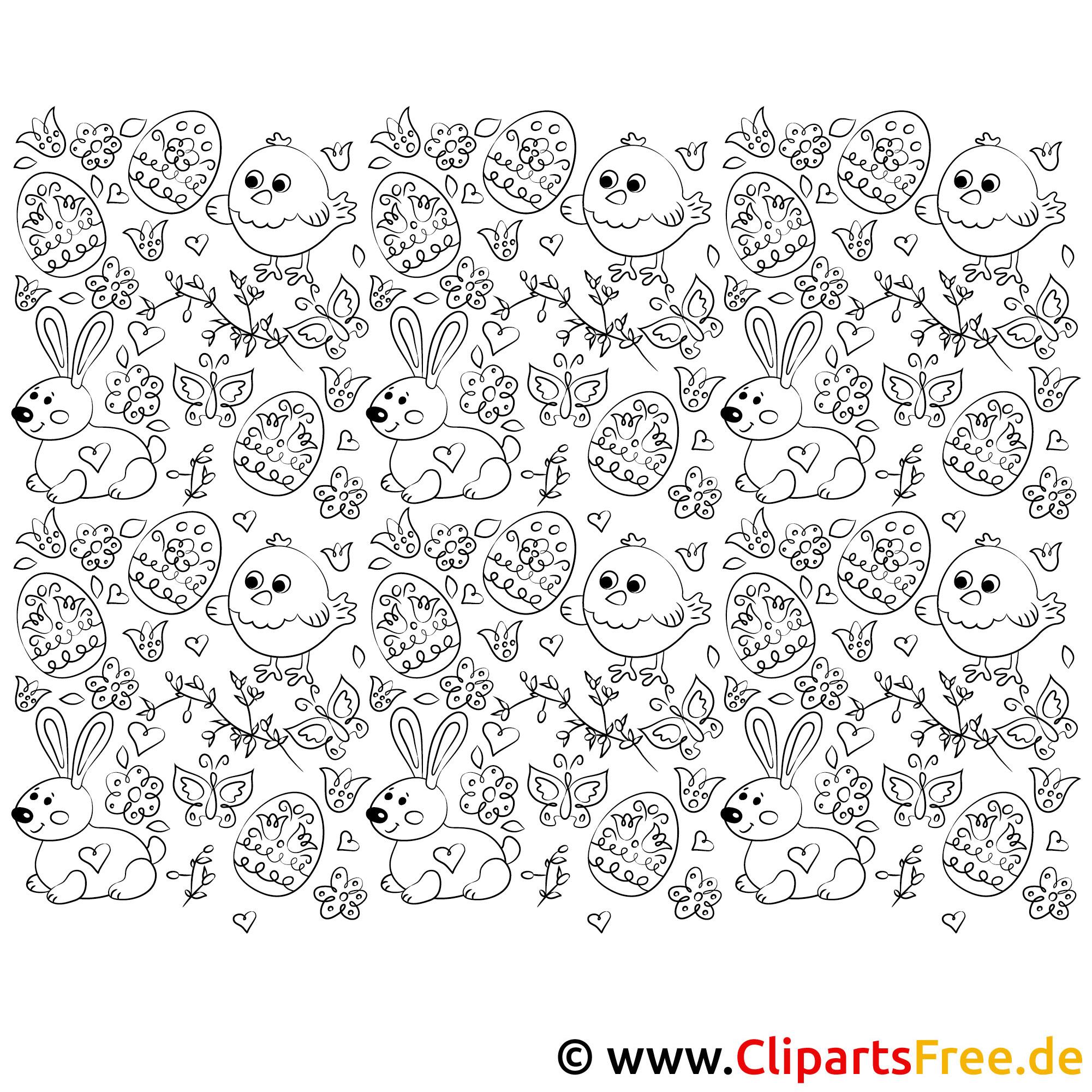 Kostenloses Ausmalbild mit Hasen und Ostereiern im PDF-Format