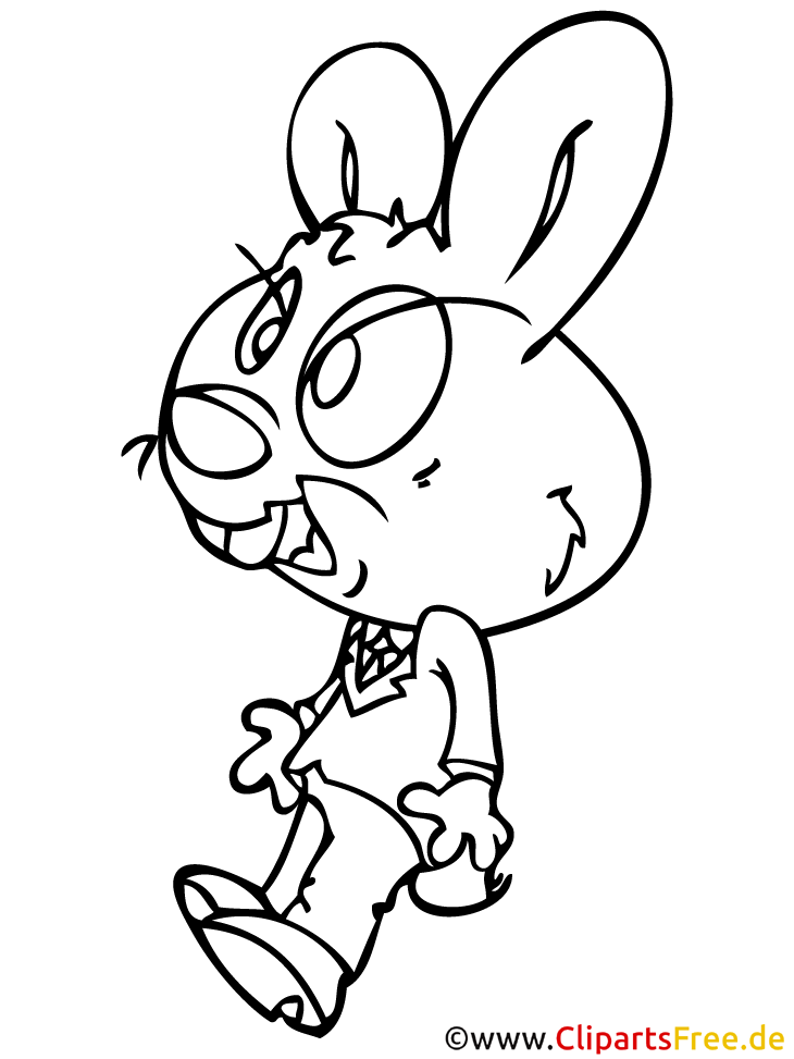 In dieser tollen Malvorlage sieht man einen ganz besonderen Hasen. Er hat große Augen und einen lustigen, fast frechen Blick. Die Ohren sind richtig schön lang und die Schnauze hat einen kleinen, süßen Knubbel. Man könnte denken, er ist gleich auf dem Weg zu einem Abenteuer! Lustig betont sind auch seine kleinen Bewegungen – so sieht er aus, als würde er einfach neugierig umherlaufen. Auf dem Bild trägt er eine süße kleine Jacke.